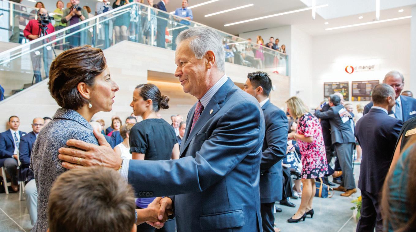 On September 1, the Providence Campus officially opened the John J. Bowen Center for Science and Innovation — the first building constructed on the Interstate 195 land in downtown Providence. University leadership was joined by Rhode Island