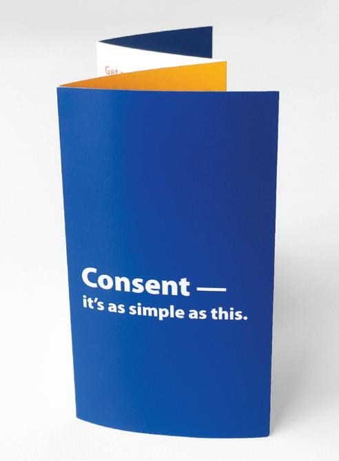 The center began by reevaluating its four-year-old approach. Before, the material was all on paper. As part of the new campaign, most of the resources on the posters and sheets were transferred to the JWU website for ease of access. Instead of a postcard-sized piece of paper, students are provided with a campus-specific, credit-card-sized wallet card that includes the most important resources to contact in case of an emergency, along with the URL of the newly created Consent Is webpages. Accompanying these are bold-print posters, each with a thought-provoking call to action and campus-specific URLs.