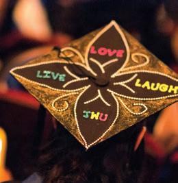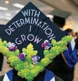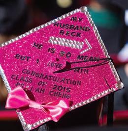 Inspirational: “There’s a great big beautiful tomorrow.” Heartfelt: “The best is yet to come.” Honest: “Finally done with this B.S.” And, exuberant: “Put a fork in it. We did it!” These were some of the messages found on the mortarboards of the students assembled for the afternoon commencement ceremony held in the Dunkin’ Donuts Center. For the first time, the College of Management graduates received their degrees together, reflecting the merger of the former College of Business and The Hospitality College.