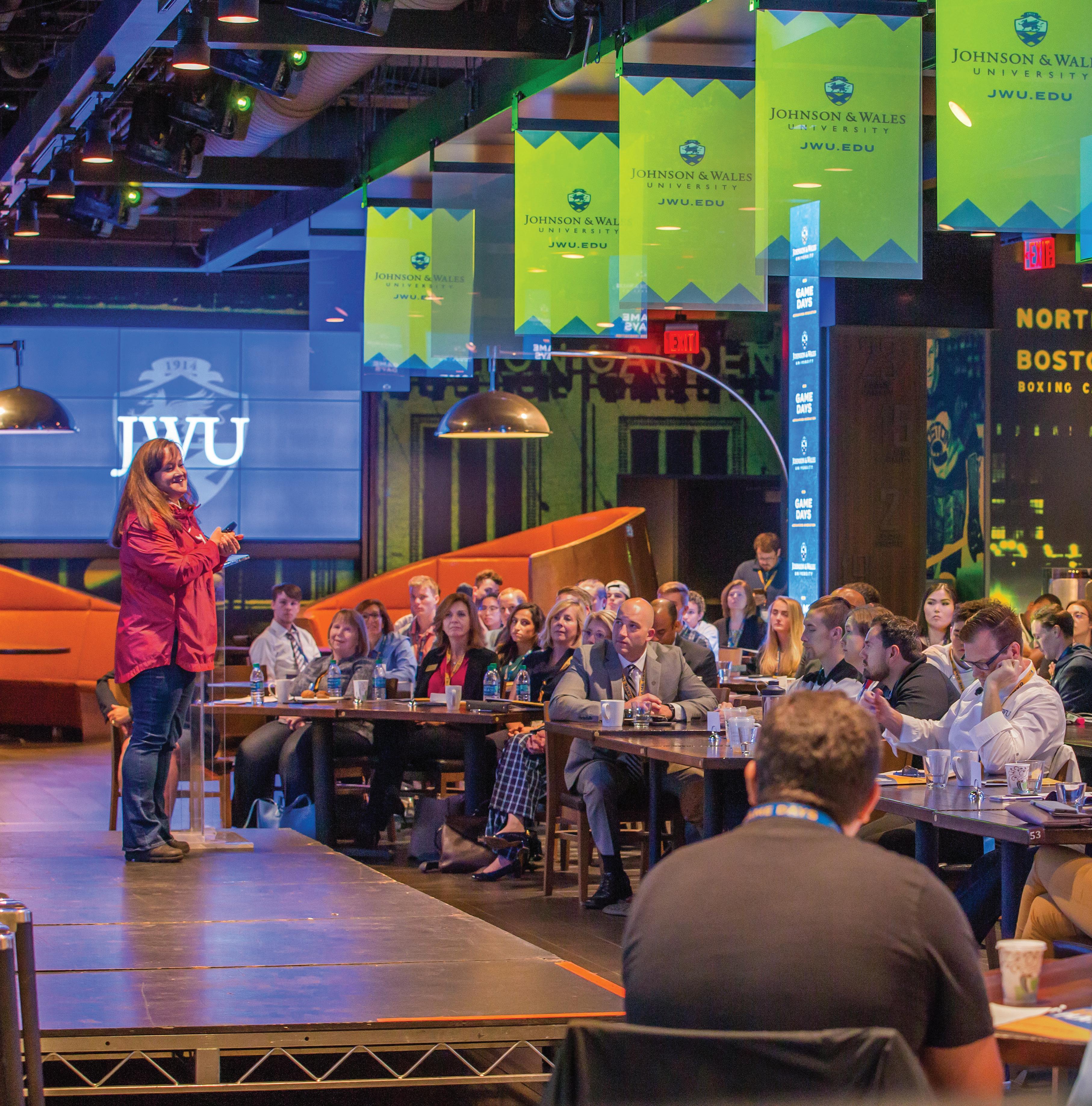 The invitation-only educational program was geared towards JWU and high school students, along with their coaches and teachers. It was held at TD Garden in Boston in October 2019 at Legends restaurant, which is open exclusively to Bruins and Celtics season ticket-holders and game-plan members. The series is one element of a five-year partnership that names JWU the official education partner of TD Garden and the Boston Bruins. The broad partnership includes experiential education opportunities for JWU students and offers a tuition benefit to Delaware North’s global workforce, TD Garden and the Boston Bruins employees.