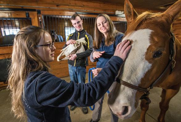 prevocational equine activities. “My ultimate career goal is to work as an OT in mental health,” says Lisa Benson ’22. “I had not considered incorporating equine-assisted therapy into my practice, but [visiting JWU’s Equine Center] changed my mind. Horses embody a gentle strength and presence, and I can picture how a well-trained horse could benefit a patient with behavioral or developmental disorders.”
