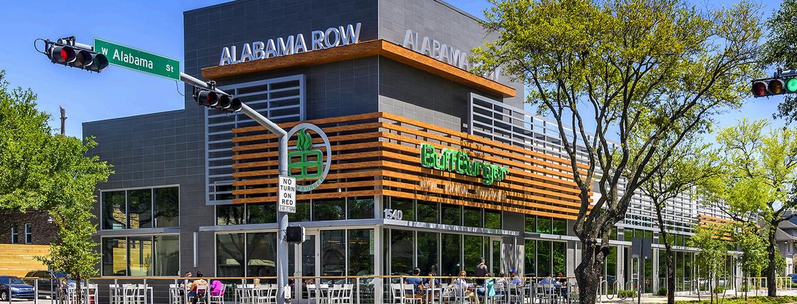 Alabama Row is an urban retail center in the heart of the Museum district of Houston. It includes restaurant and retail spaces with an outdoor dining area adjacent to West Alabama Street