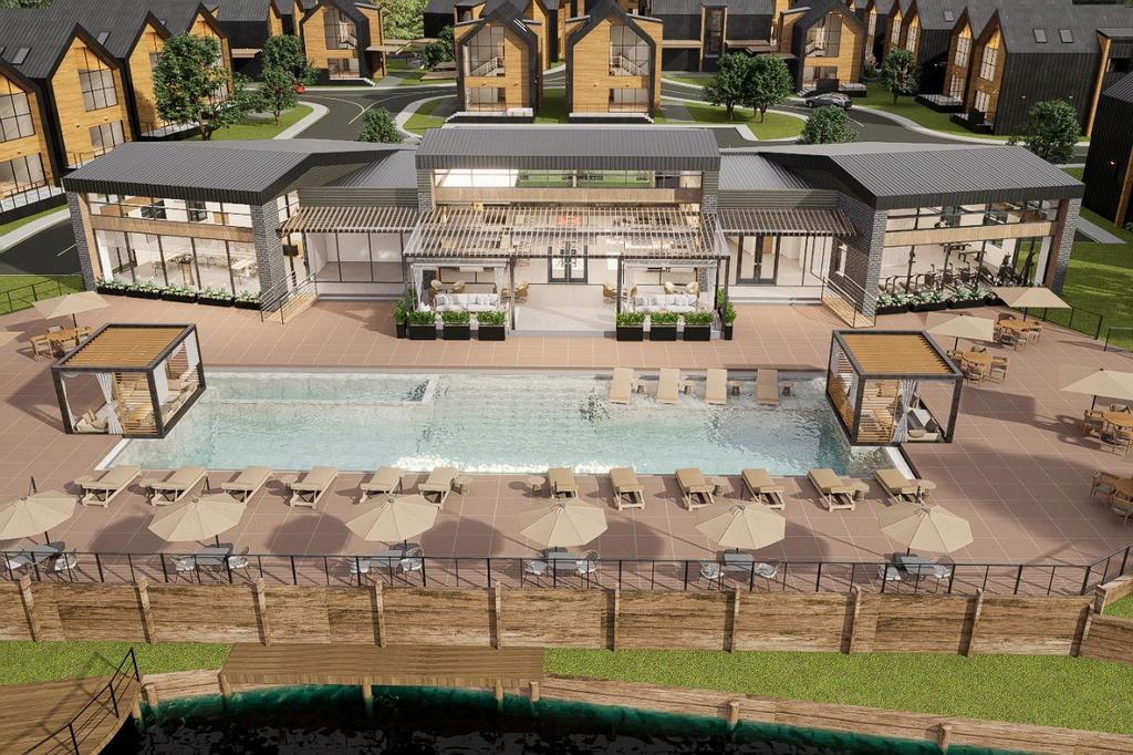 This first phase of a three-part residential community offers “for sale” cottages designed for quiet lakefront living or vacation rentals. Homes are clustered in groups of 12–16 around themed courtyards like Urban Fountain, Prairie Meadow, and Pine Forest, with all entrances facing inward The 7,500 SF clubhouse features a fitness spa, virtual golf, lounges, co-working, concierge, and a catering kitchen all with Lake Conroe views.