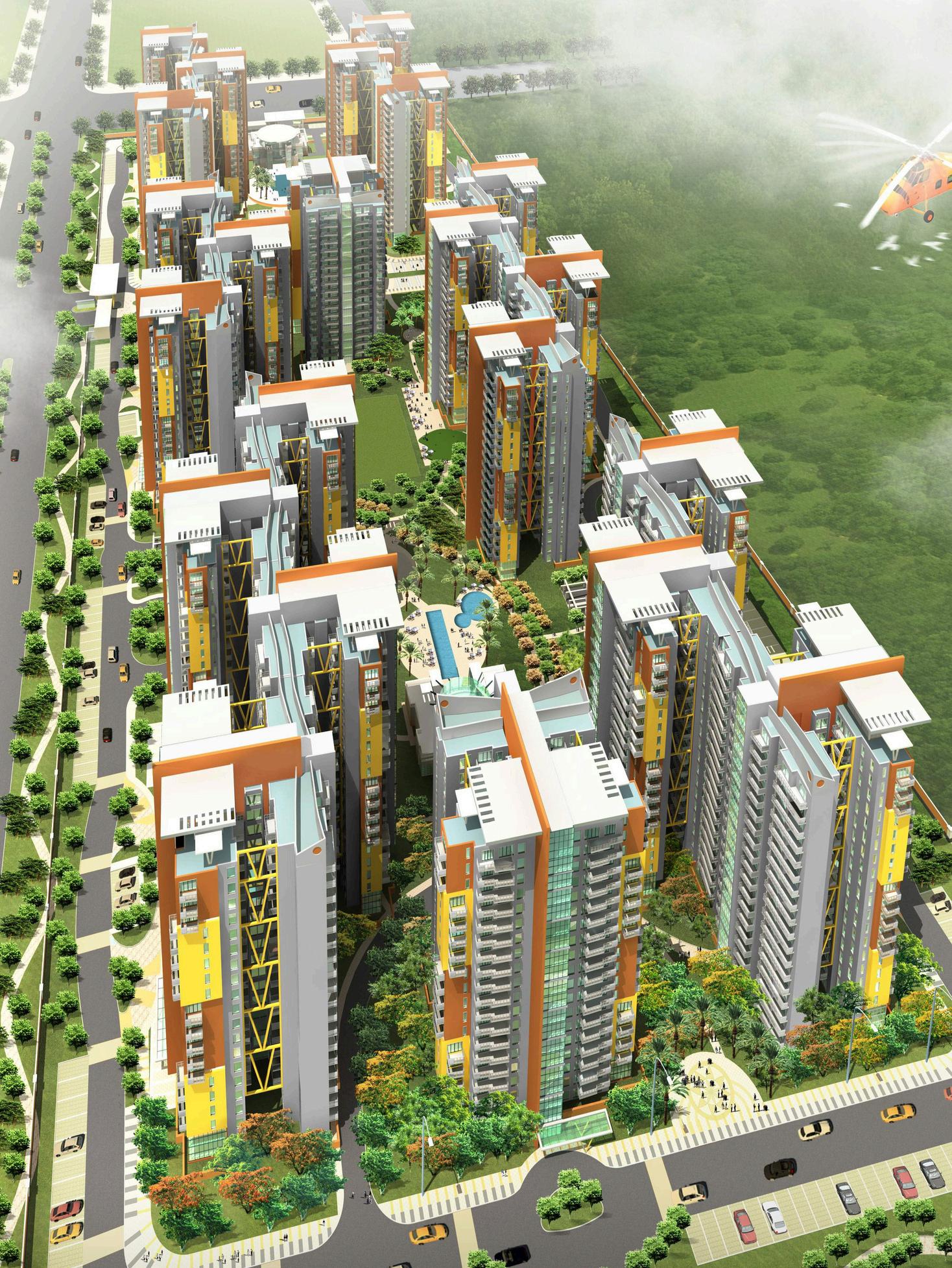 The Resort Noida is a condominium development designed to meet the growing suburb of New Delhi, India The 22 residential towers are nested together to create courtyards, putting greens, pool decks and two Clubhouses. The unique tower shapes provide excellent views from each bedroom of each unit.