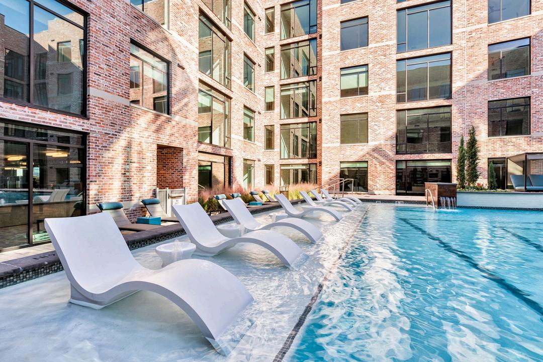 Rising land costs in Houston’s gentrifying neighborhoods are driving denser multifamily projects The Fairmont quadplex prototype can be stacked or stand-alone, with four units above a tandem parking garage. Featuring studios to 3bedrooms, the design offers high ceilings, marble counters, and lightfilled living areas, with a fitness and leasing office fronting the pool deck.