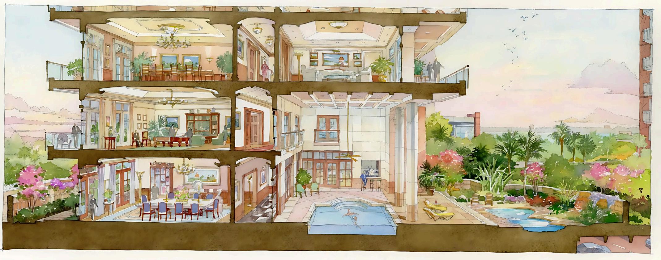 Located in Gurgaon, Villa Nova offers ultra-luxury living with just two 5,000 sq ft suites per floor in each 18-story tower. Select units feature double-height living spaces and private pool decks at ground and rooftop levels. Towers are arranged to frame a spacious central courtyard, while amenities include a Michelin-starred restaurant, tennis center, Olympic pool, and a serene Japanese garden with a lake.