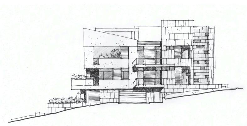 This site plan is located in the Reis Magos neighborhood of Goa, India a former Portuguese colony. Set on a steeply graded terrain, the design takes advantage of elevated views through a vertically stepped layout. The villas range from 250 to 300 square meters (2,500–3,000 sq. ft.) and are designed for time-share and short-term rentals. All units enjoy direct access to Aguada Beach.