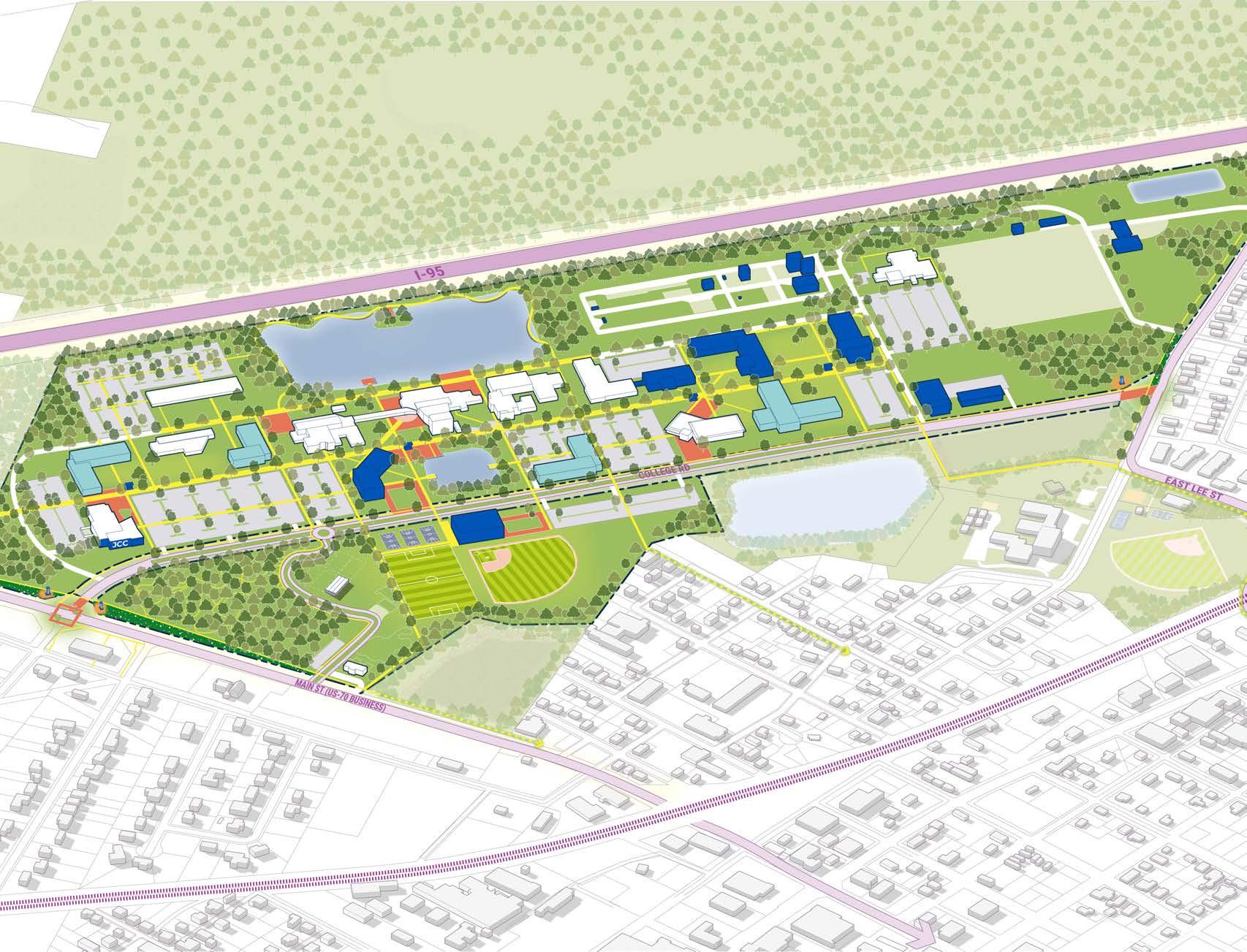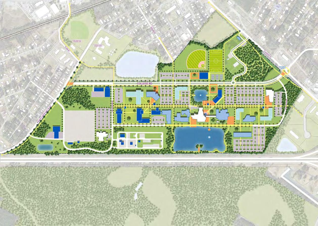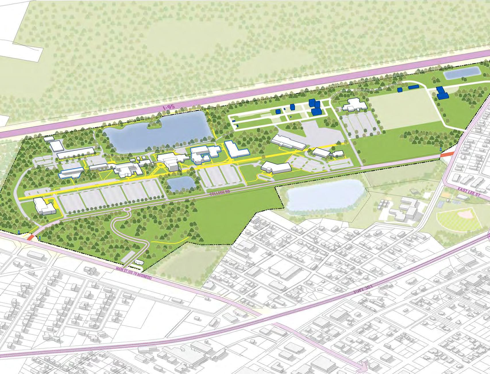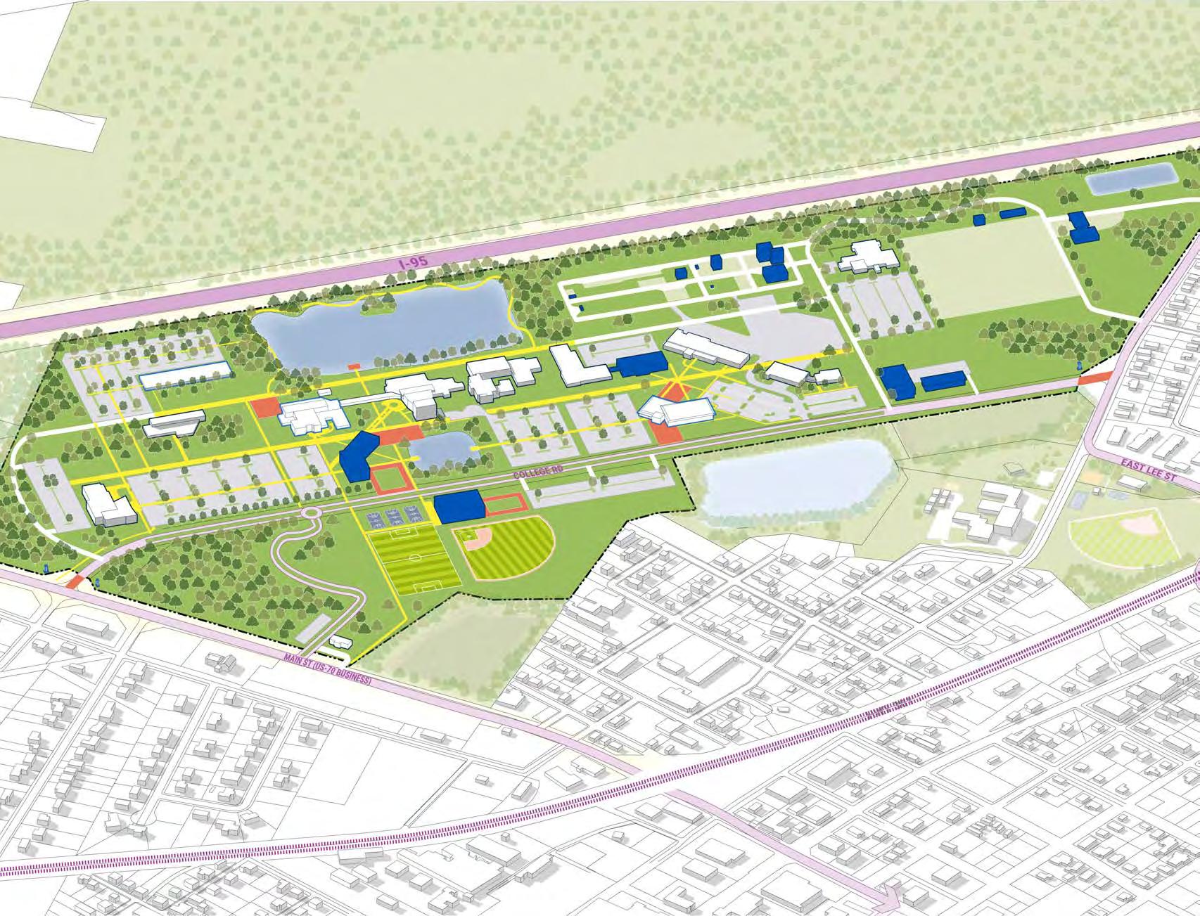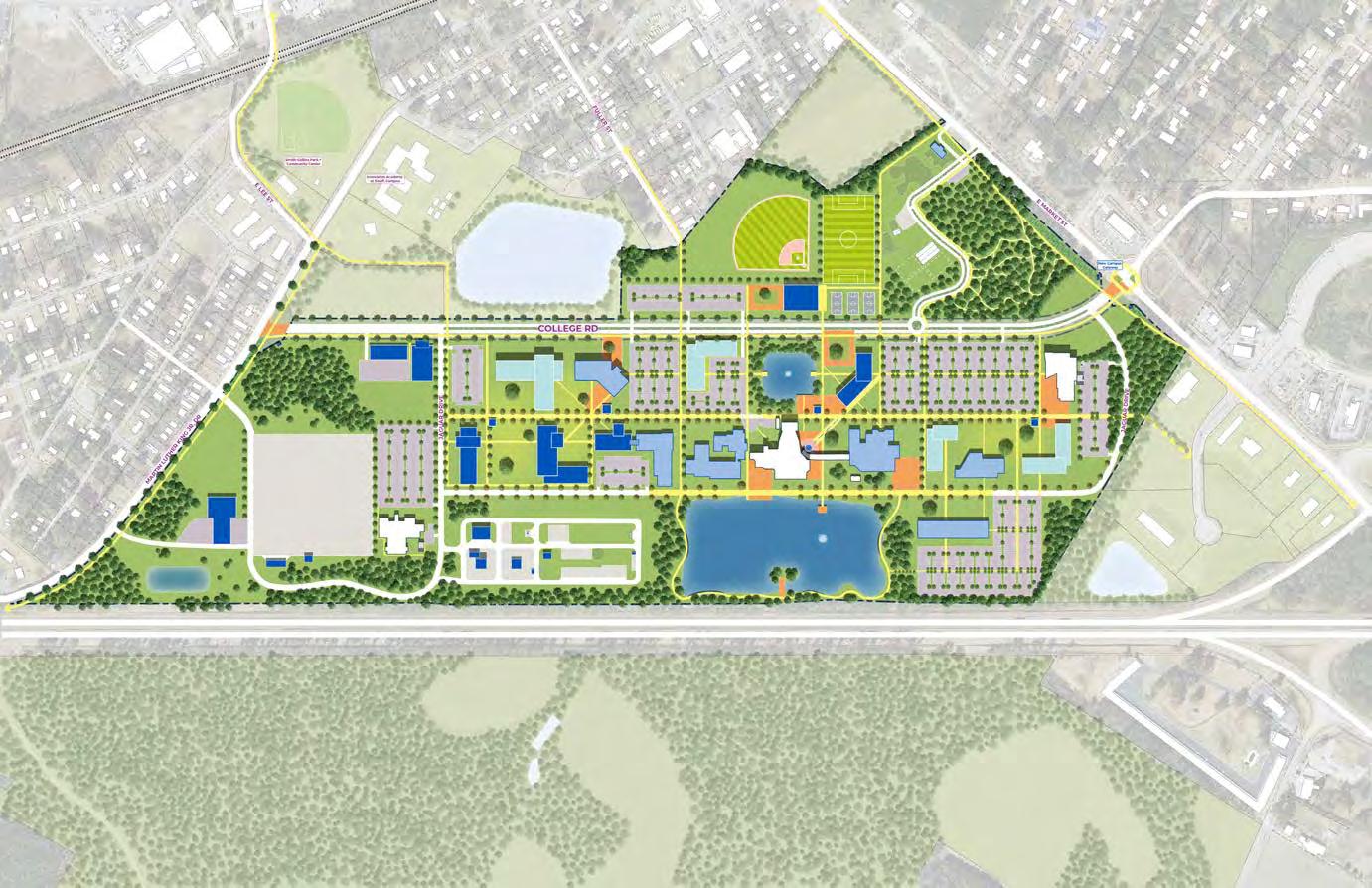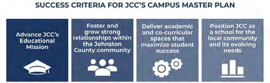 The goal of this Master Plan is to update the previous 2015 study and provide Johnston Community College with the necessary information to inform decisions and priorities for anticipated campus growth. The intention of the Master Plan is to measure how wellaligned JCC’s programs are with the regional market, examine current buildings and infrastructure, and illustrate distinct approaches for future campus land development.