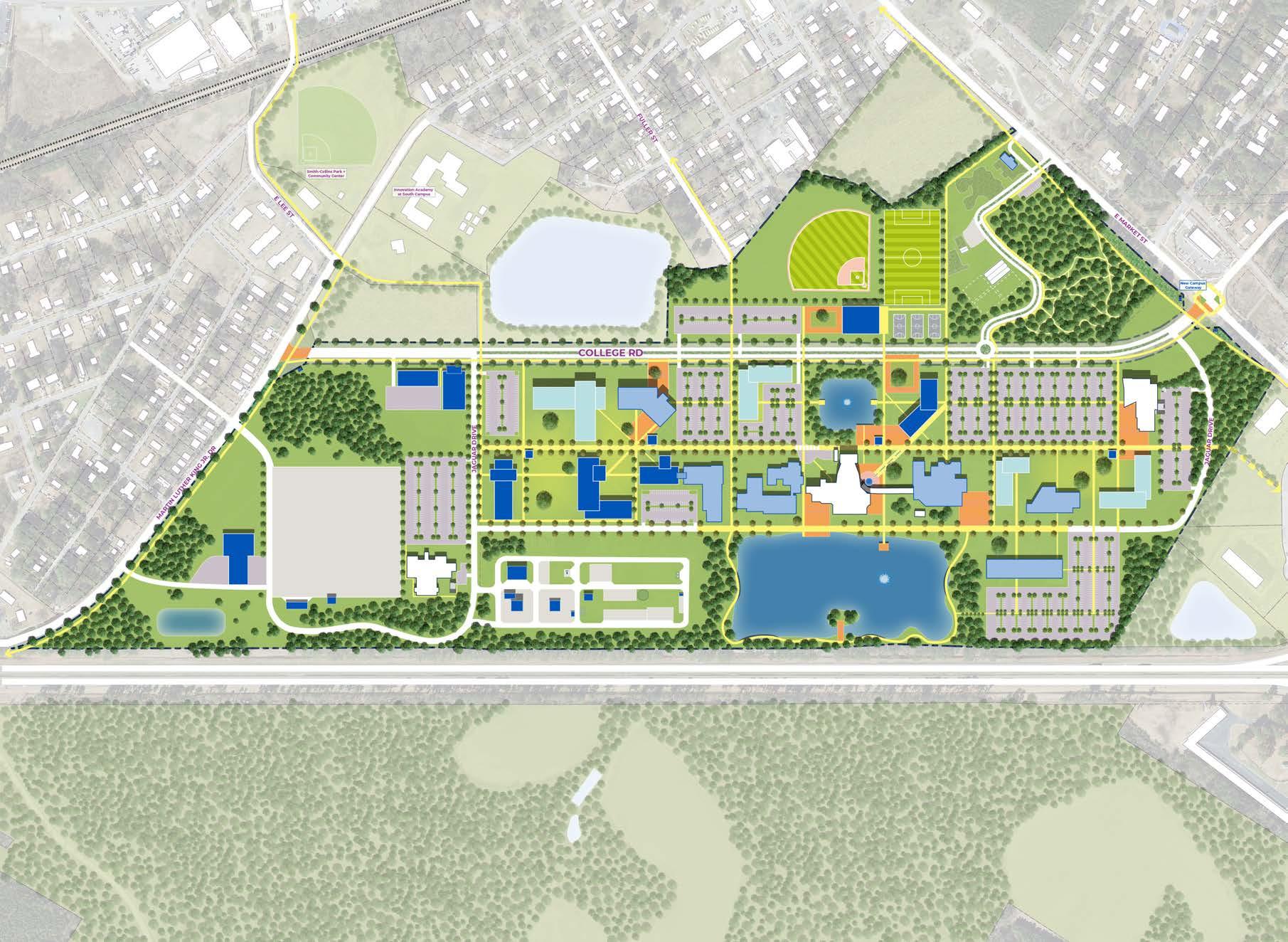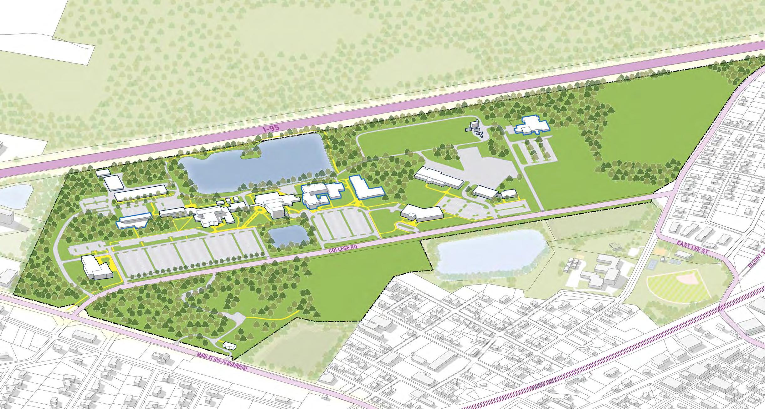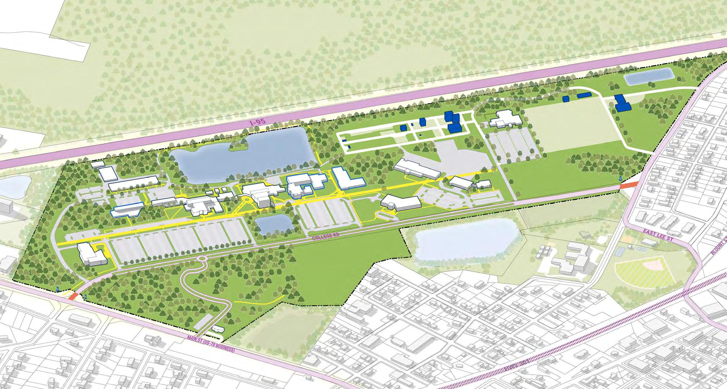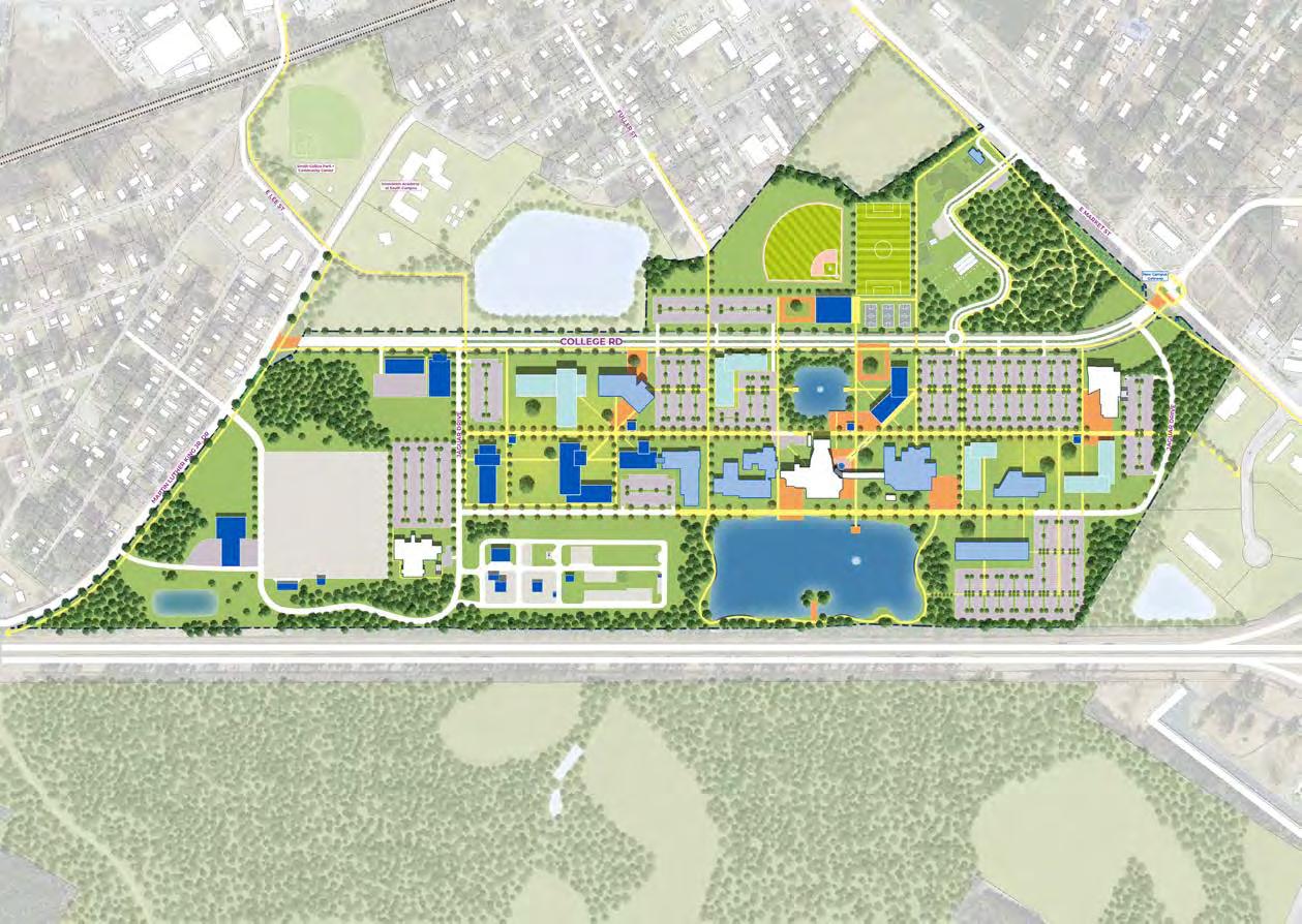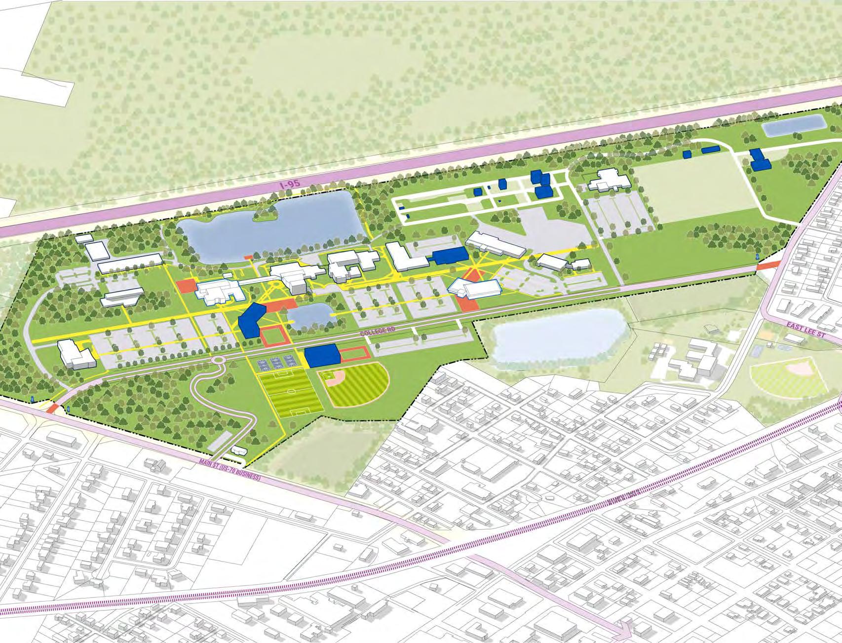 The goal of this Master Plan is to update the previous 2015 study and provide Johnston Community College with the necessary information to inform decisions and priorities for anticipated campus growth. The intention of the Master Plan is to measure how wellaligned JCC’s programs are with the regional market, examine current buildings and infrastructure, and illustrate distinct approaches for future campus land development.