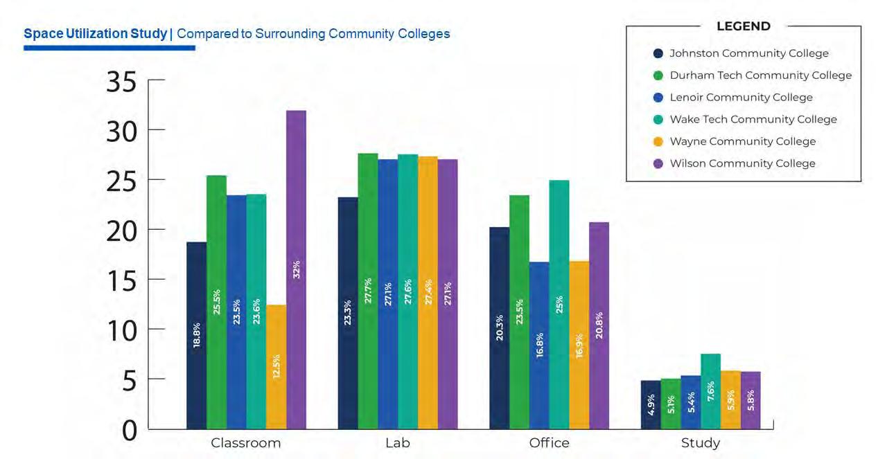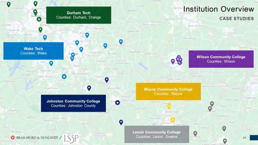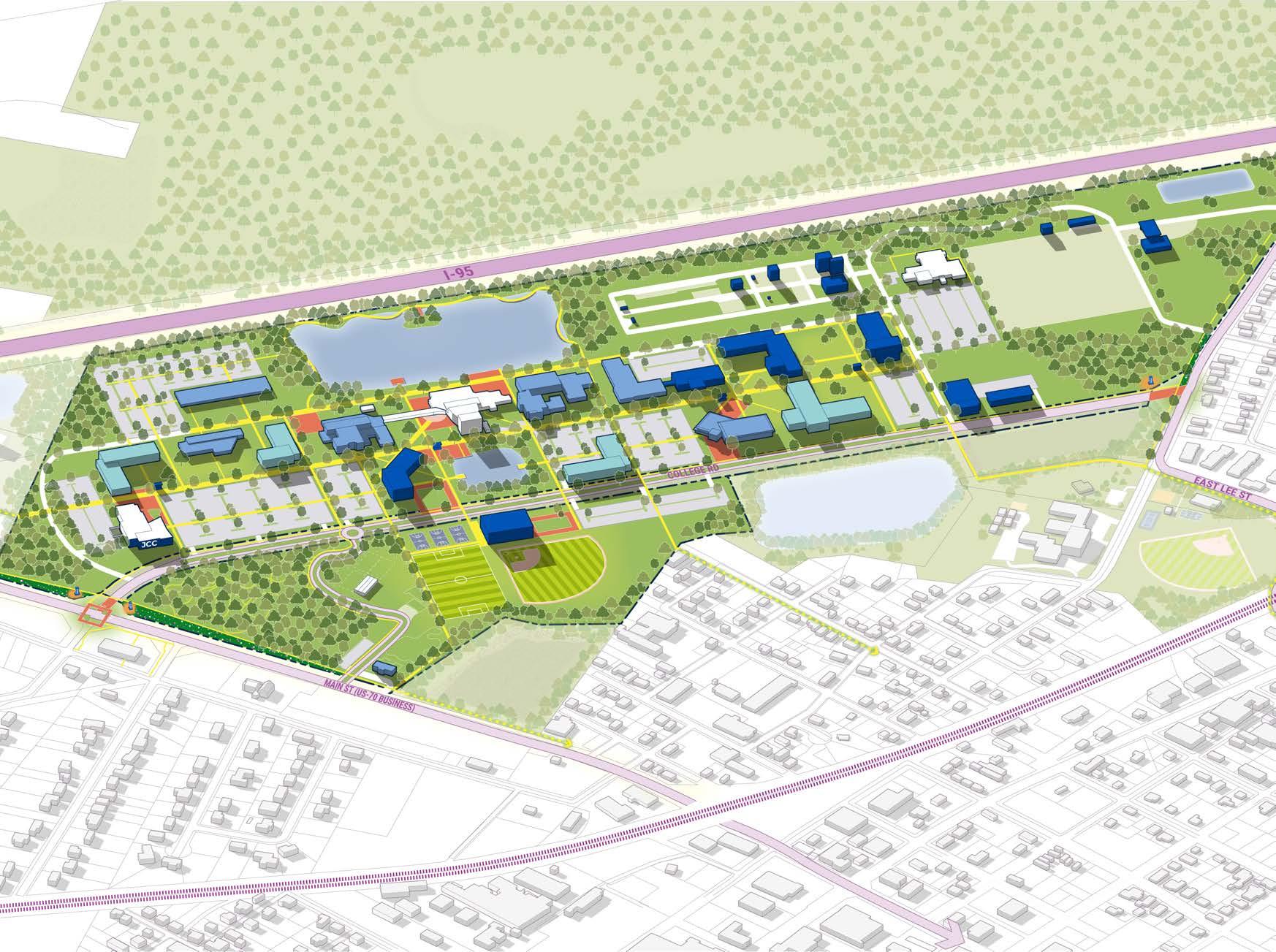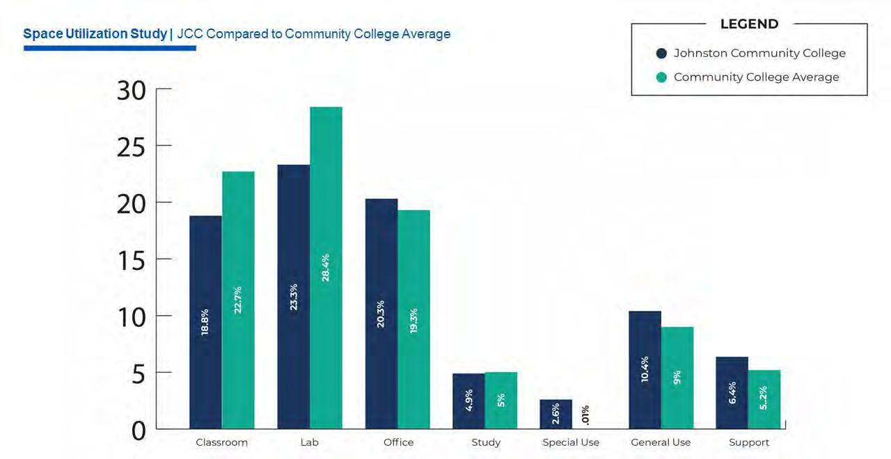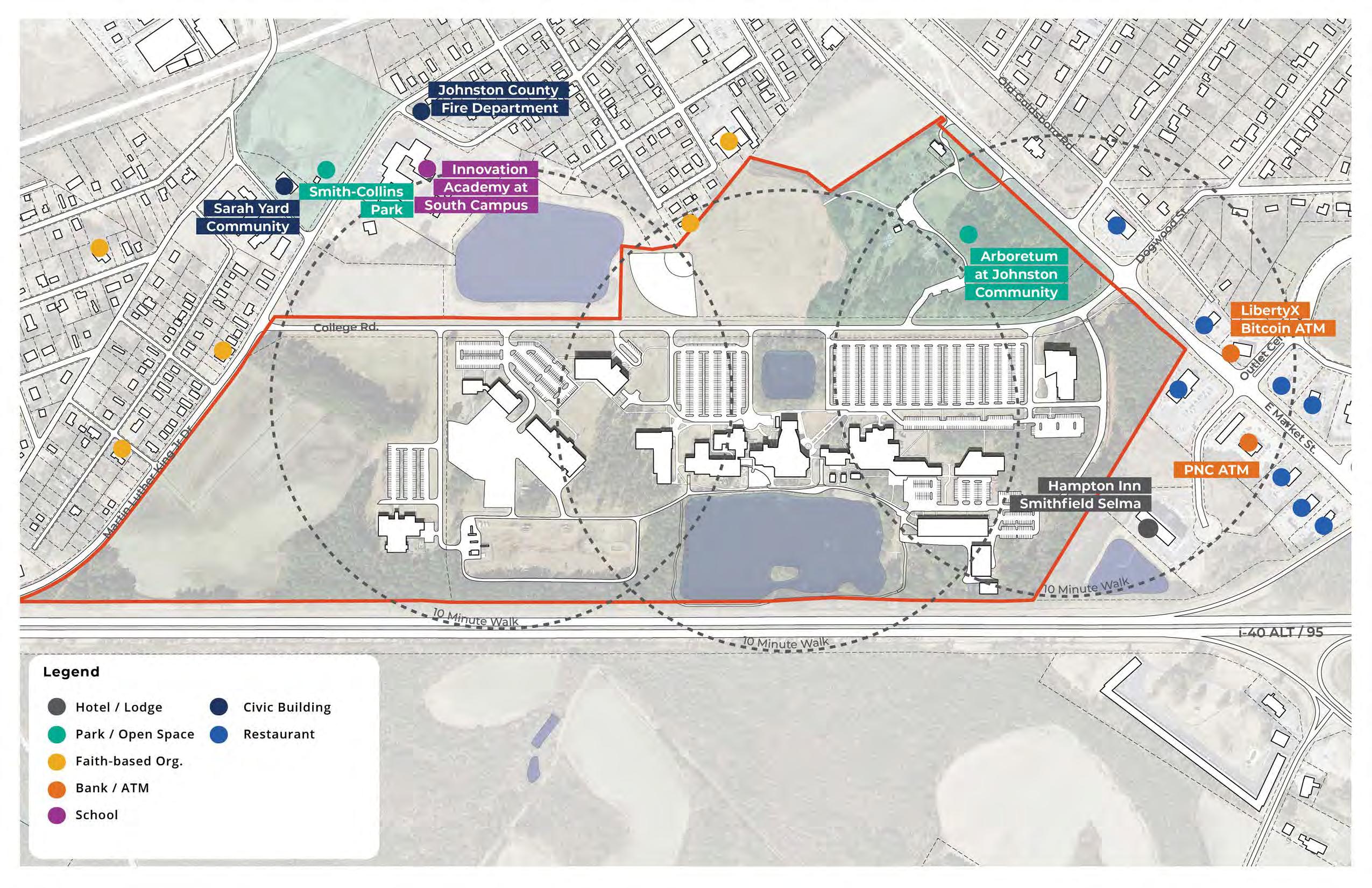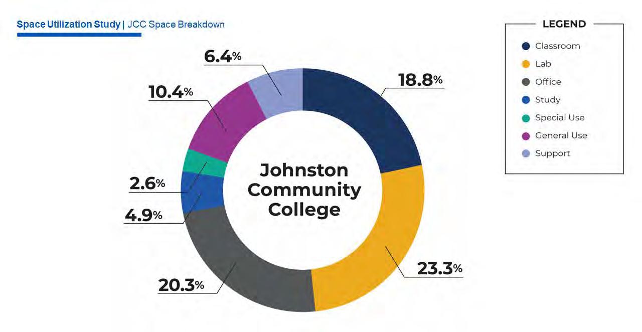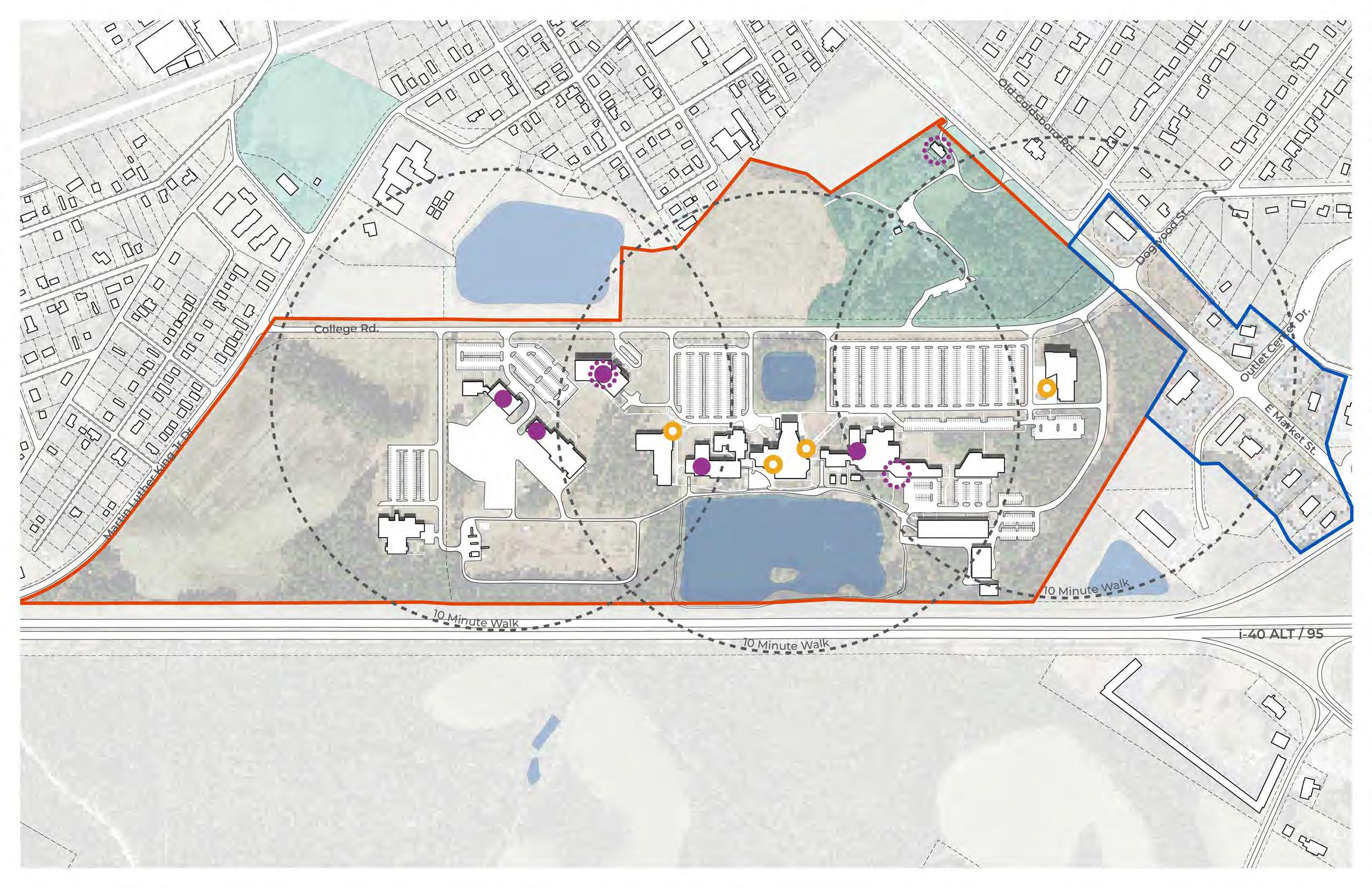 The goal of this Master Plan is to update the previous 2015 study and provide Johnston Community College with the necessary information to inform decisions and priorities for anticipated campus growth. The intention of the Master Plan is to measure how wellaligned JCC’s programs are with the regional market, examine current buildings and infrastructure, and illustrate distinct approaches for future campus land development.