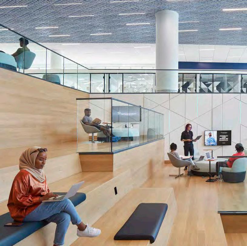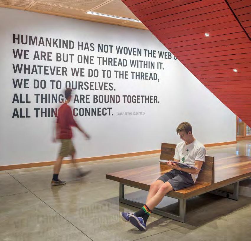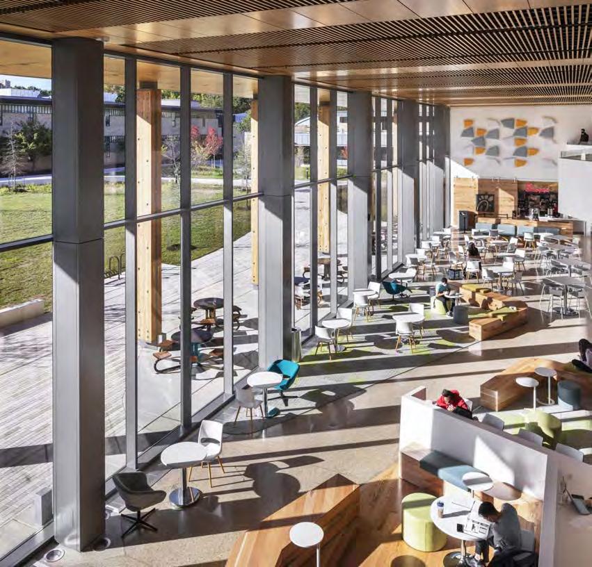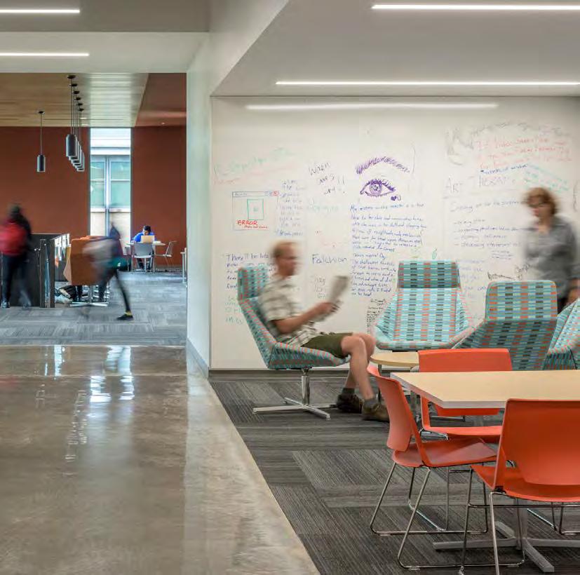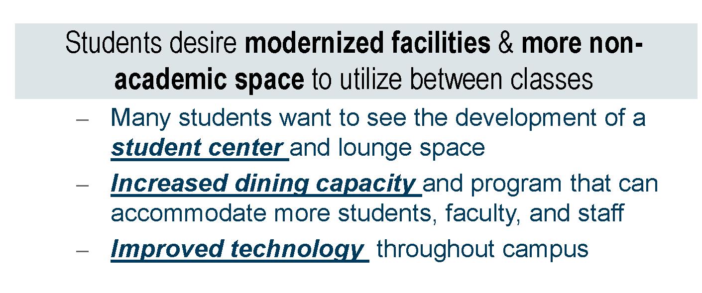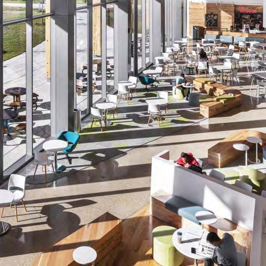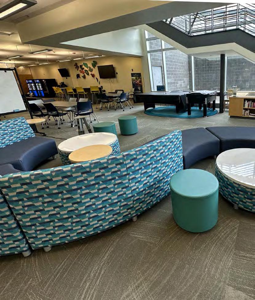 • Explore providing a student lounge in every building in or near front entry ideally coupled with food services (coffee/drinks and vending)