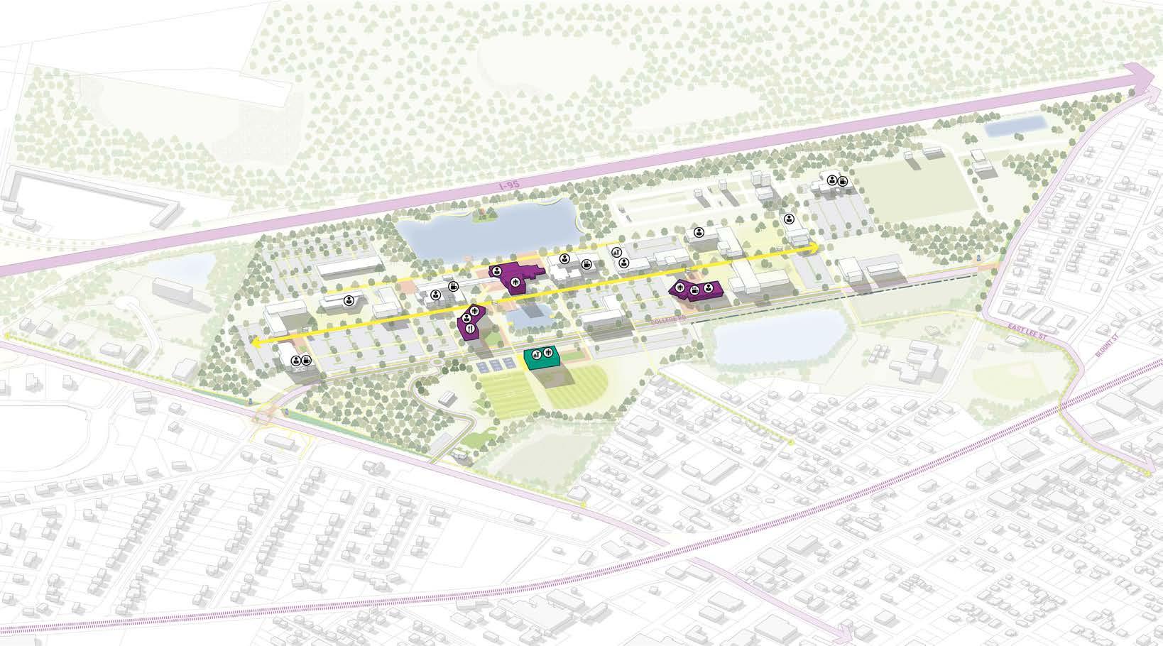 2. Create a Series of Interconnected Campus Greens to the Existing Site Features