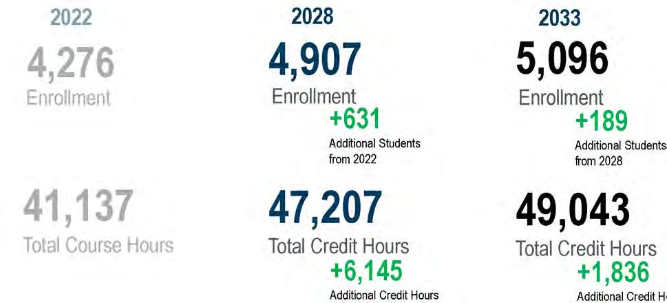 The JCC Campus Master Plan supports future enrollment growth, expansion of existing programs, and the addition of new programs while maintaining the character of JCC.