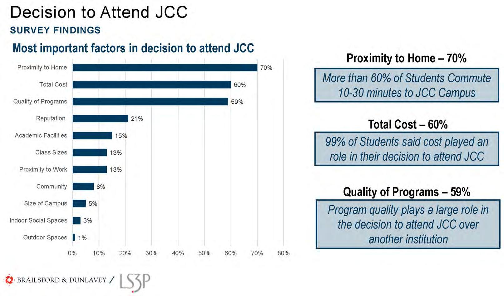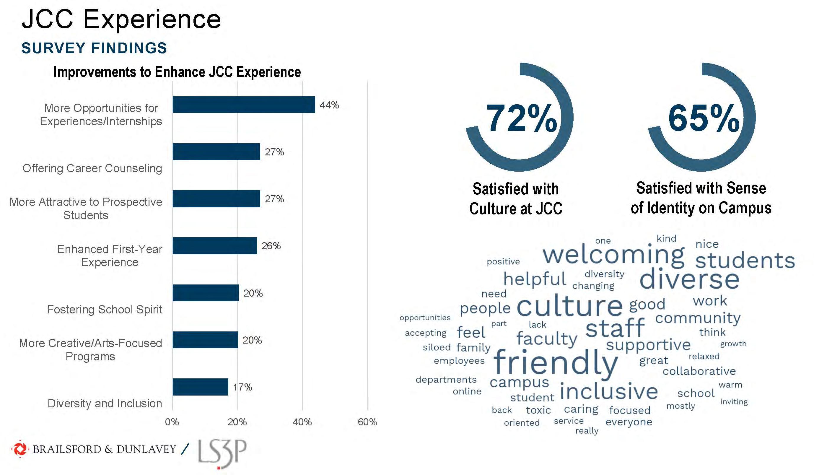This overarching principle is a priority for JCC as it sees competition from other community colleges. The Master Plan aims to attract more students to JCC by offering a vibrant and supportive learning environment.
