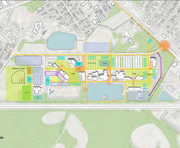 3. Create Student Hubs Serving the Districts within the Campus 4. Energize Campus Greens with Key Activity Zones Public Services + Trades District Knowledge District