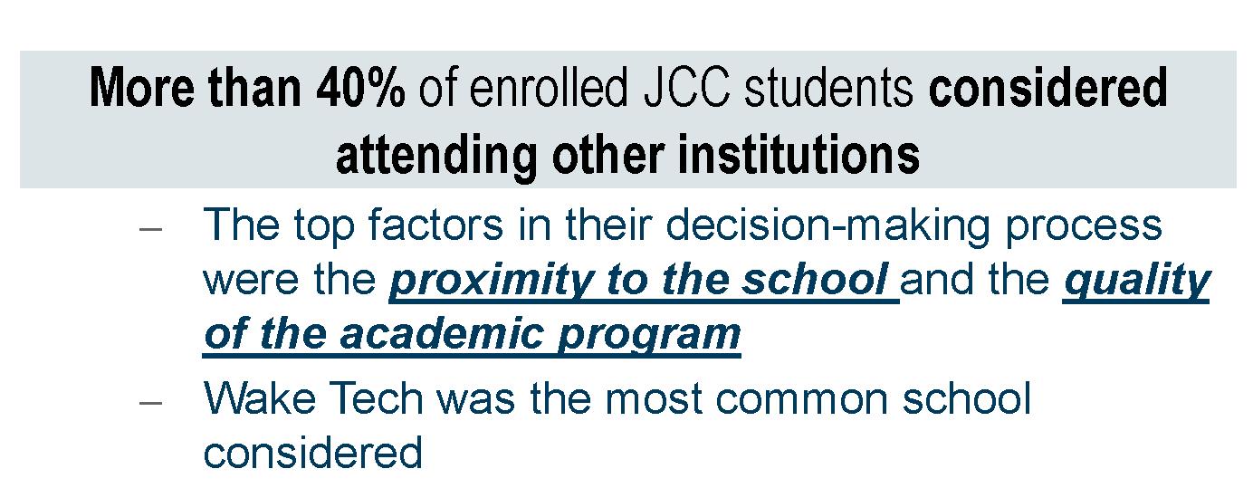 JCC has established a presence in Johnston County over many years. As the county population continues to boom, it is crucial to reach students in underserved areas so JCC can expand its reach.