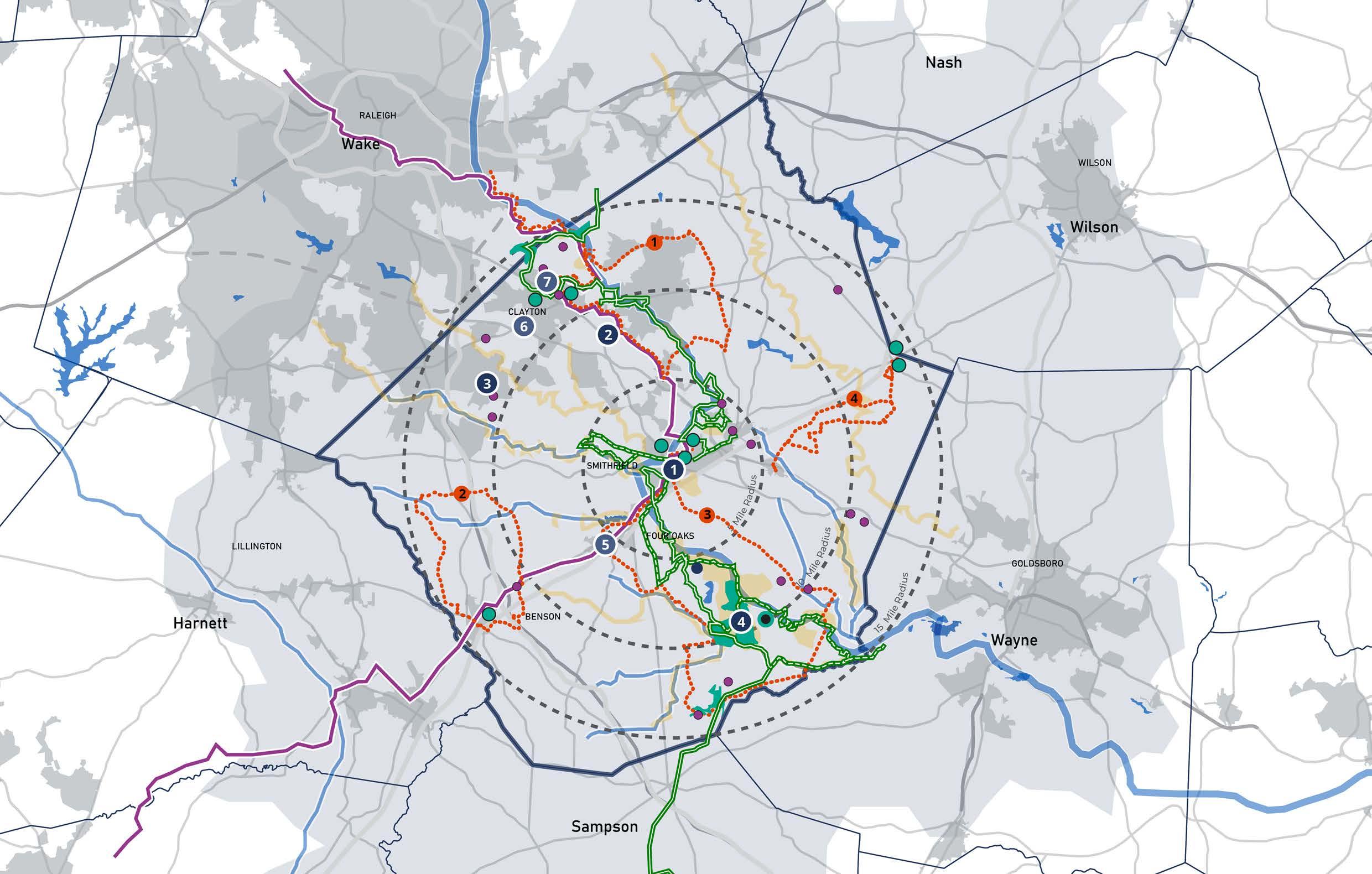 An organizing theme of the planning process is centered on three key aspects: development of design principles to guide decision making, an iterative process to bring the best evidence-based solution forward, and strategic positioning as part of the economic development of Johnston County. These aspects will help to prioritize the most transformative and beneficial projects in the future.