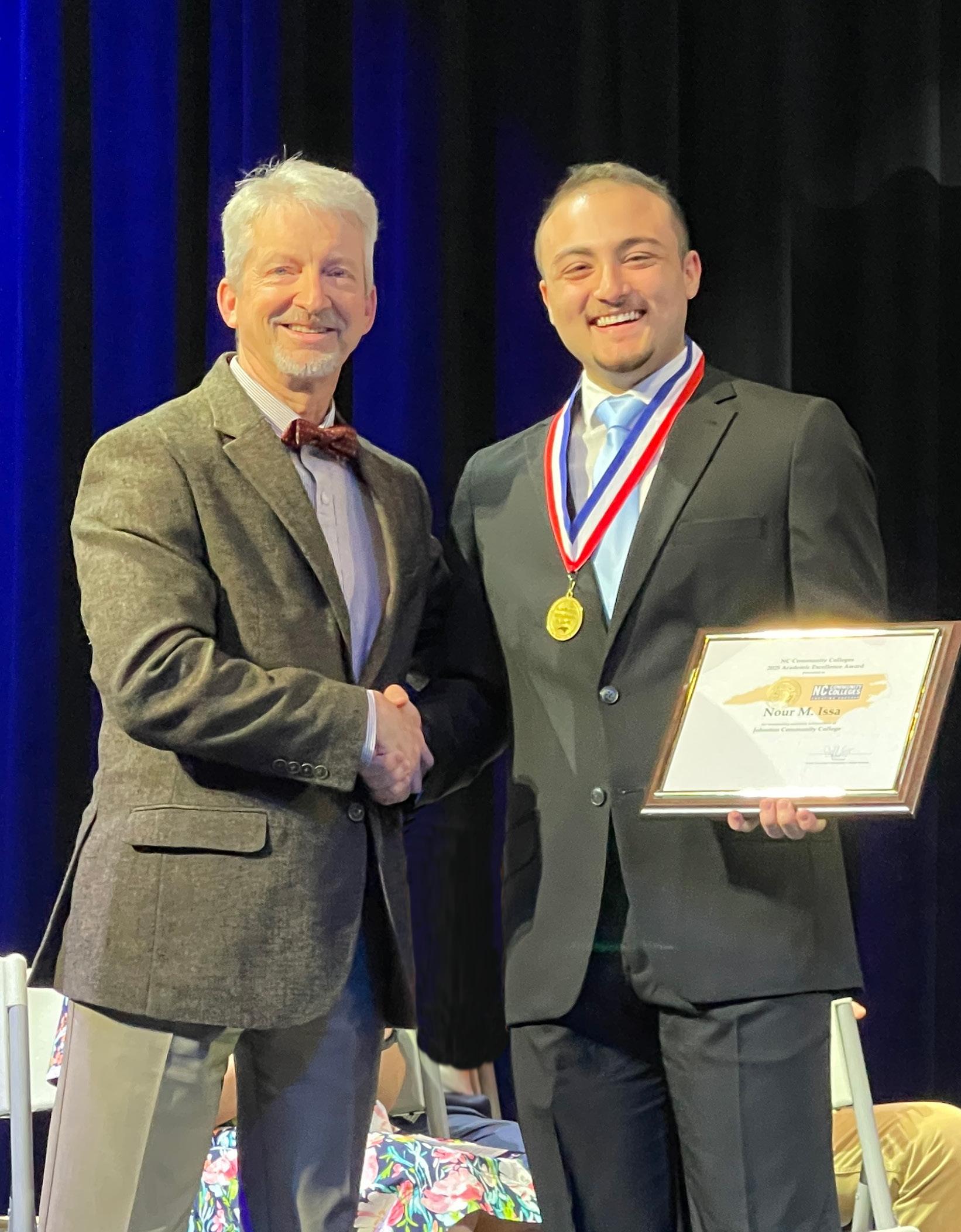 Dr. Vern Lindquist and Nour Issa, recipient of JCC’s Academic Excellence Award.