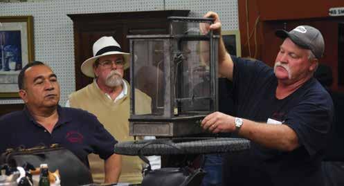 You can’t ever really know what to expect when it comes to items for sale at the gallery. Over the several auctions I’d been to recently, I’d seen a wide variety: a lobster trap, quilts, a sterling silver English tea warmer, a buggy wrench, a daguerreotype album from the late 1800s, a giant handmade cotton basket from the Civil War era, tapestries and rugs and an 18th-century chest with hand-cut nails and leather strap hinges.