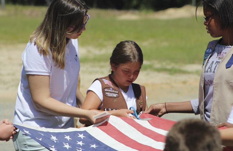 Four Oaks Girl Scout Troop 1728 held a flag retirement ceremony on Memorial Day. This year, the troop, along with a guest Cub Scout and a guest Boy Scout, retired 41 United States and three North Carolina flags. The troop has been holding this ceremony for more than 15 years, and once held a ceremony in which it retired 75 U.S and 20 more state flags.
