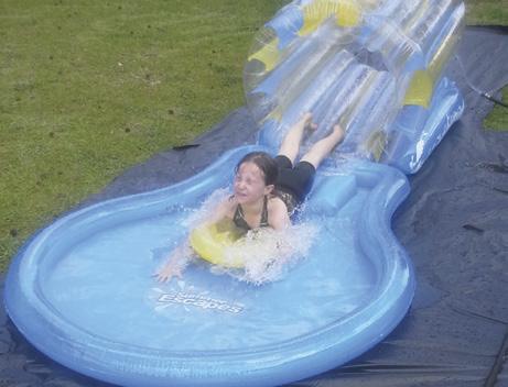 “We have a 167-foot water slide,” Kimberly Austin, Hexagon Wake Park manager said. “We have clear lake water. There are kid slides. We have a picnic area with a charcoal grill. We have a nice shady area for outdoor eating. … Anything you can find at a beach, you can find right here at Tucker Lake.”