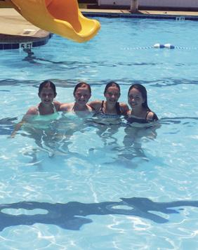 Katon Blackmon, Lanie Norris, Anna Smith and Caroline McMullen splash and laugh at the Four Oaks Community Pool.