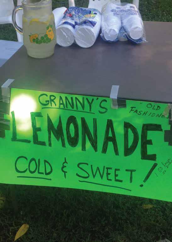 Mrs. Rebecca herself was standing behind a card table marked with a neon green hand-written sign that read, “Granny’s Old Fashioned Lemonade — Cold and Sweet! $1.00 large, .50 small.” I had to smile at the name, but having heard