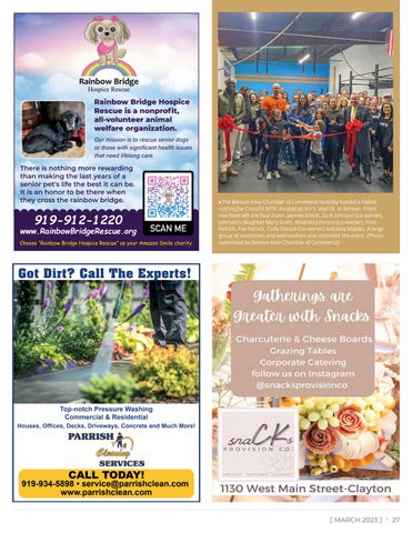 [ MARCH 2023 ] • 5 919-980-5522 • www.johnstonnow.com • Facebook.com/JohnstonNow • 1300 W. Market Street, Smithfield, N.C. 27577 • hello@johnstonnow.com Johnston Now Magazine is a monthly publication of Shandy Communications, LLC for our Johnston County neighbors. No part of this magazine may be reproduced without written consent by the publisher. Advertisers take sole responsibility for the validity of their advertisement. ©2023 Johnston Now. All rights reserved. [ PUBLISHER ] column YOUR