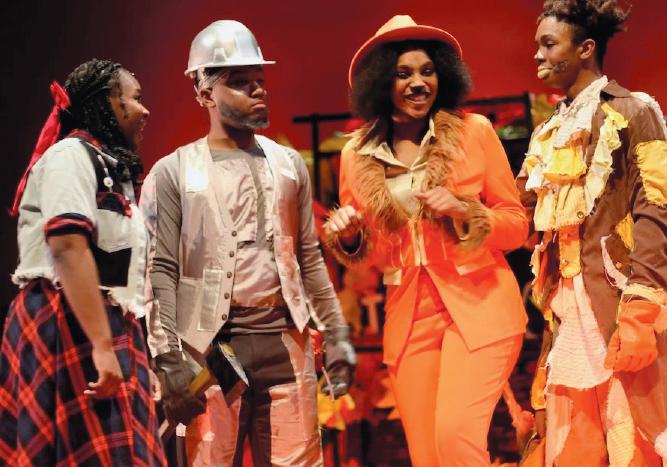 And on the school's stage it does, with a mellifluous core and a twinkle-toed ensemble that never seems to stop moving. Based on L. Frank Baum's The Wonderful Wizard of Oz, The Wiz tells the story of native Kansan Dorothy (Laila KellyWalker), whose quiet life with her Aunt Em (Samaia Brantley) and sweet terrier Toto (Marangelie Colón) is uprooted when a tornado rips through her town. Dropped into the strange land of Oz, she meets a Scarecrow (a lithe-limbed Dakarai Langley), Tinman (Aaron Steed), Cowardly Lion (Jayla Bosley) and Addaperle (Adrian Solocio, performing in drag), the Good Witch of the North. Ten minutes in, she's begun to make a fantastical pilgrimage back to Kansas via Oz, complete with the sparkling slippers of the Wicked Witch of the East.