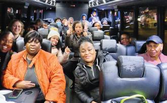 “We’re waiting on Dottie,” Sykes said, referring to NCNW president Dorthula “Dottie” Green, among the 15 judges in the contest, as a mother and her three kids boarded the bus followed by a young woman arrayed in holiday garb. “I should have told her 4:30,” Sykes said. It was 5:15. The bus was scheduled to depart at 5.