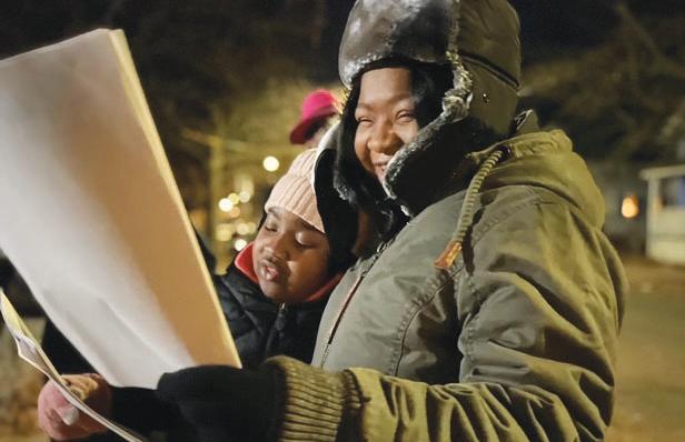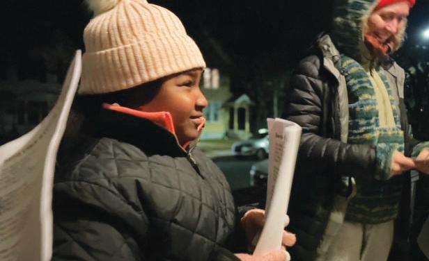 As the group drifted down the block, it became a way to see the neighborhood with new eyes—and ears. Lights danced and glittered in a Newhall Street front yard, and the group flowed from “Silent Night” and “Jingle Bell Rock” to “O’ Come All Ye Faithful.” On Hazel Street, Rawls-Ivy said she was excited for “Hark! The Herald Angels” because she loves listening to characters sing it on A Charlie Brown Christmas.