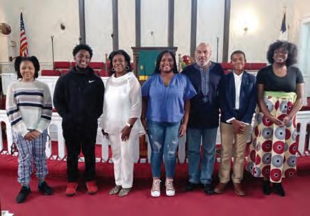 First AME Church Juneteenth Celebration Supervisor Christy Davis Jackson, Esq. with members of the FAME WMS Serenity Southwell (Honorable Mention), Richard Burton (Honorable Mention), Sis. Patricia Clifton (Steward and Coordinator), Mariah Burton (3rd Place Winner), Pastor B.A. Hart, Joseph Micah Taylor (1st Place Winner), Jordan Adams (2nd Place Winner) (L-R)
