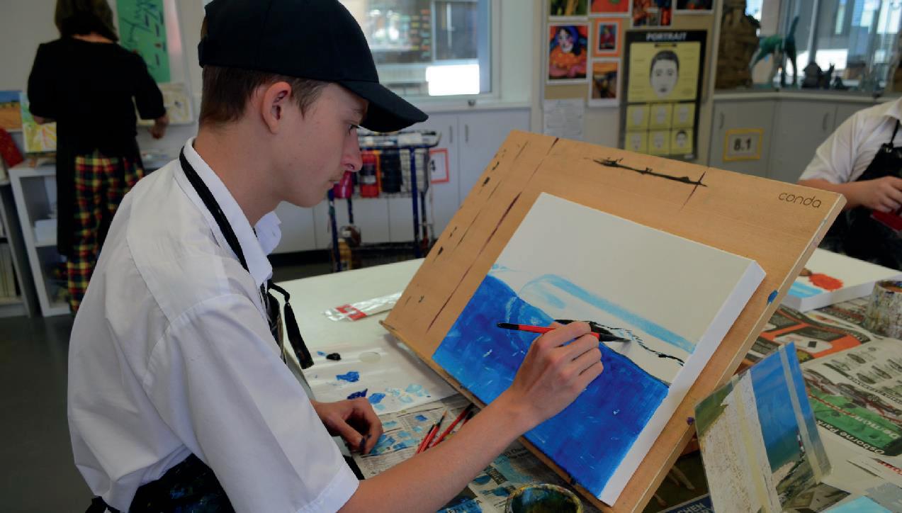 This hands-on, practical Visual Arts option enables students to explore art and design by utilising a broad range of artistic forms including: drawing, painting, clay sculpture, printmaking and more Students are given an opportunity to develop their own artistic style as a method of self–expression while also learning about composition, design and creative problem solving skills.