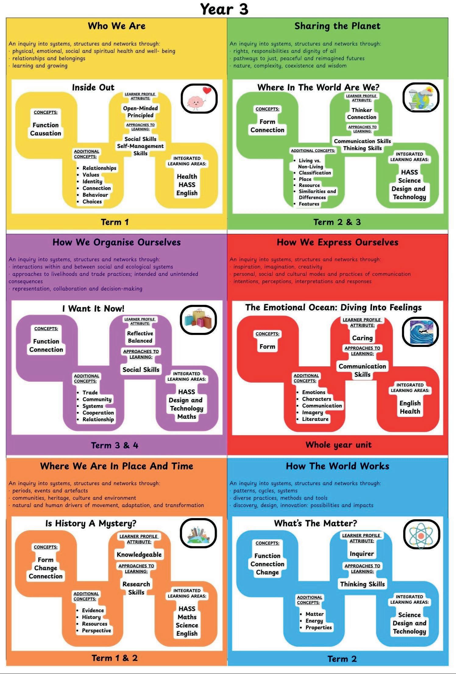 You will find below an overview of the units of inquiry for this year group. It allows you to see which subjects will be included in each unit of inquiry and when it will be taught over the course of the year. All educators in Primary are contributing to the ongoing programme review across 2025, and as such, some areas will be subject to change. We thank you for your support whilst we do this important work.