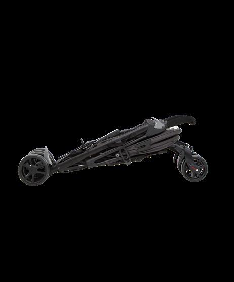 Automatic fold lock secures the stroller into a compact package that fits in small spaces