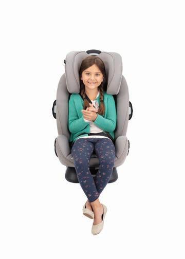 SoftTouch™ 3-point harness to add security, with soft lower buckle cover