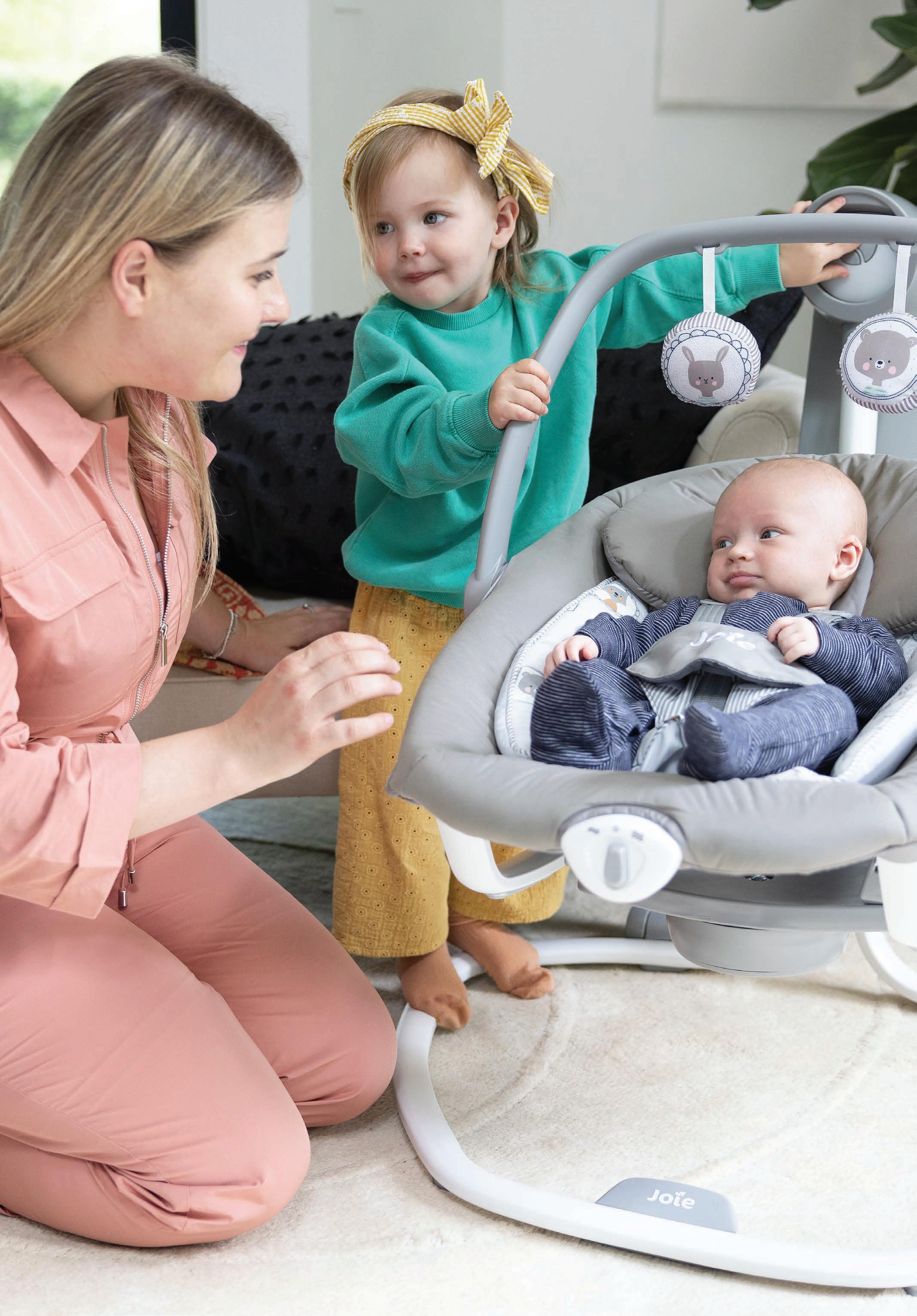 Sleek and flexible frame softly bounces baby, keeping them happy even when they’re not in your arms
