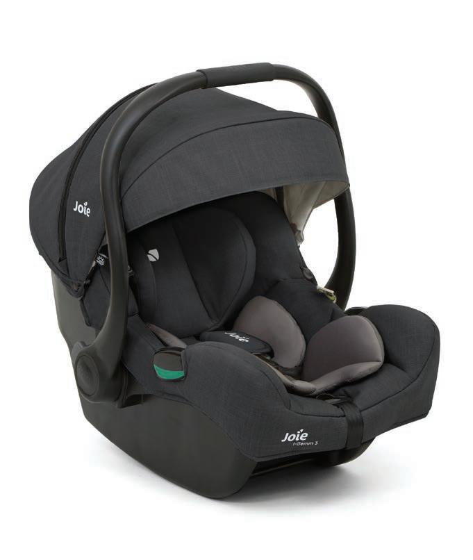 Joie infant carrier compatible with: i-Snug™ 2, i-Gemm™ 3, i-Level™ Recline, i-Jemini™, and sprint™ with included adapters