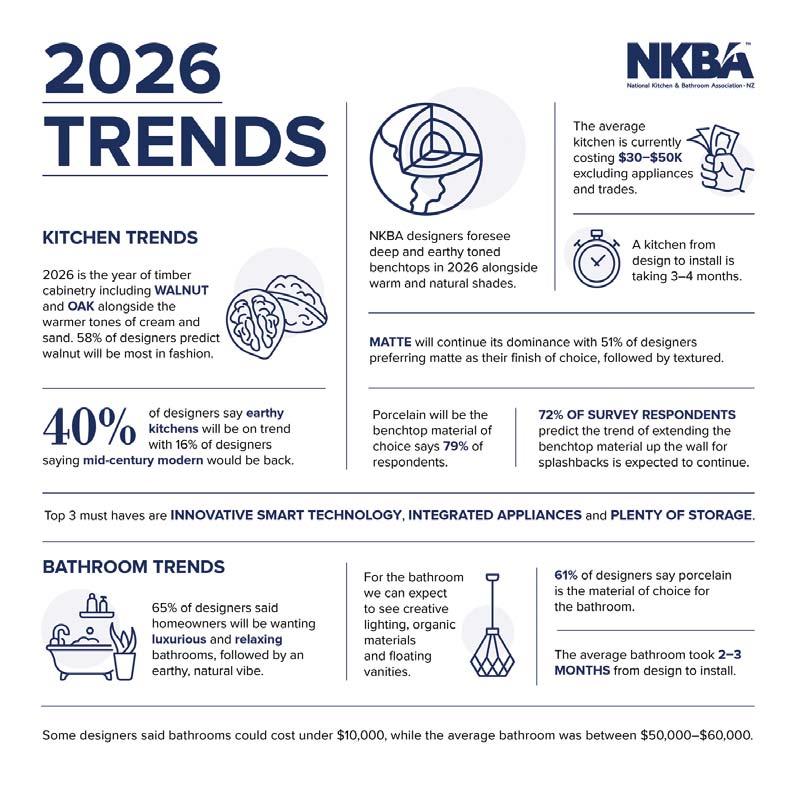 Rachael Kwok presents the NKBA predictions for 2026 along with comments from members on materials, colours, trends and costs.