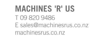 For more info phone 09 820 9486, go to www.machinesrus.co.nz, or visit Machines R Us in their new showroom at 13 Patiki Rd in Avondale, Auckland