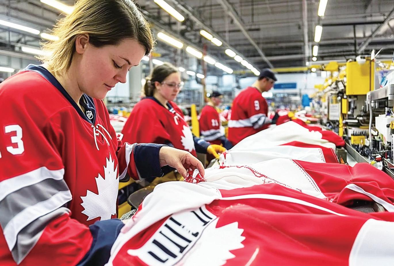 이곳에서 제작된 정품 유니폼은 1975년부터 리그 모든 팀 선수와 팬들 에게 전달됐다. 하지만 미국이 캐나다 산 제품에 25%의 관세를 부과하면서, 전체 생산 물량의 약 80%가 관세 대 상이 될 상황이다. 현재 NHL 공식 유니폼은 기본형이 499.99달러, 이름과 번호가 포함된 맞 춤형은 579.99달러부터 시작한다. 유 니폼 한 벌에는 약 100개의 조각이 들 어가며, 전 공정은 수작업으로 이뤄진 다. 직물은 미국산, 로고는 중국산이 지만, 재단부터 봉제까지는 모두 퀘벡 현지에서 이뤄진다. 하지만 높은 인건비와 환율 차이, 여기에 25% 관세까지 더해질 경우, 캐나다 생산은 더 이상 유지하기 어렵 다는 게 업계의 현실이다. SP어패럴은