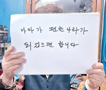 마음이었다”며 “날카롭지 않고 편안한 나라가되었으면좋겠다”고했다. ‘혐오 없는 세상’을 바라는 시민도 많 았다. 오모(30)씨는 한남동 인근 회사로 출근하며 날 선 말을 뱉는 시위대와 매 일 마주쳐야 했다. 오씨는 “남을 미워하 는 말만 많이 들었는데 정말 피로했다” 며 “광장에서 아름다운 말을 들을 수 있 는 시간이 오면 좋겠다”고 적었다. 서울 용산구에서 카페를 운영하는 김모씨는 “20·30여성들을위하는사회,성차별·여 성혐오 없는 사회를 바란다”고 했다. 직 장인 정태은(29)씨는 “갈라치기와 혐오 가없는대한민국을바란다”고말했다. 시민들의 정치 참여가 활발해졌으면 좋겠다는 바람도 있었다. 환경미화원 함종길(52)씨는 “시민들의 민의가 국회 에 제대로 반영될 수 있는 사회가 되었 으면한다”고바랐다. 전율 기자 jun.yul@joongang.co.kr