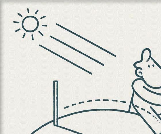이를 재 보니 태양 빛이 가지는 경 사는 7.2도였고, 시에네에서는 0도, 즉 경사가 없었다. 지구 한 바퀴를