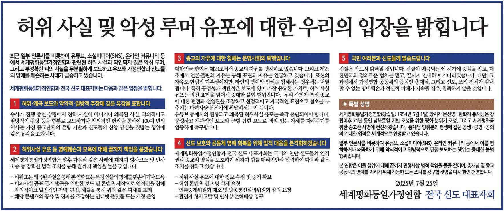 다. 통일교 측은 “윤 전 본부장 측이 아