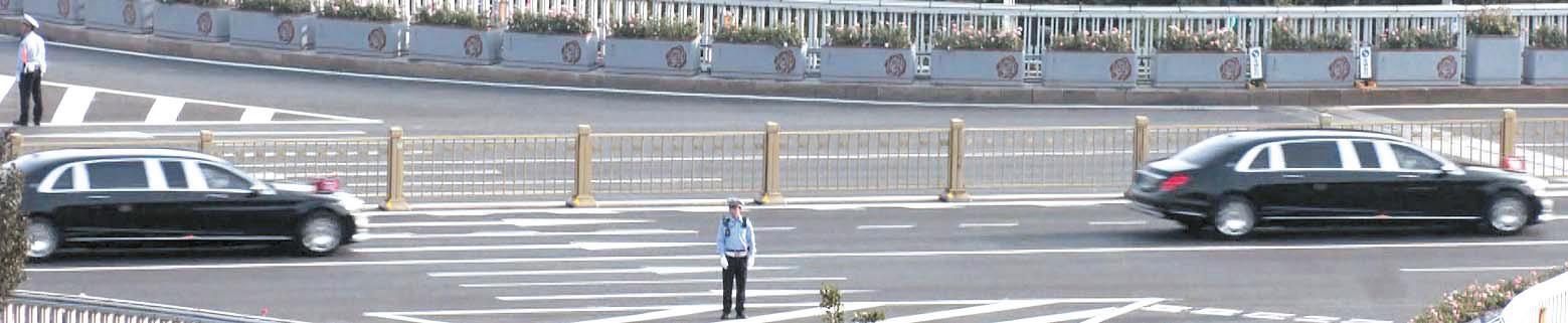 색 문장을 단 김 위원장의 벤츠 차량 두