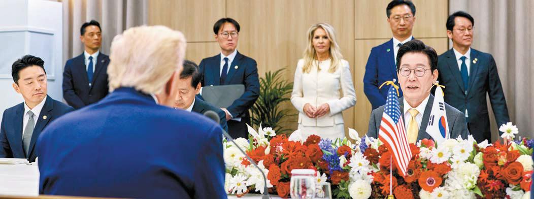 치면 두 정상은 2박3일간 약 607분 동 안 함께했다. 정부가 준비한 선물도 달랐다. ‘금 사 랑’으로 유명한 트럼프 에게는 천마총 금관 모형을 선물했다. 트럼프는 이를 직접 에어포스원에 싣 고 가겠다고