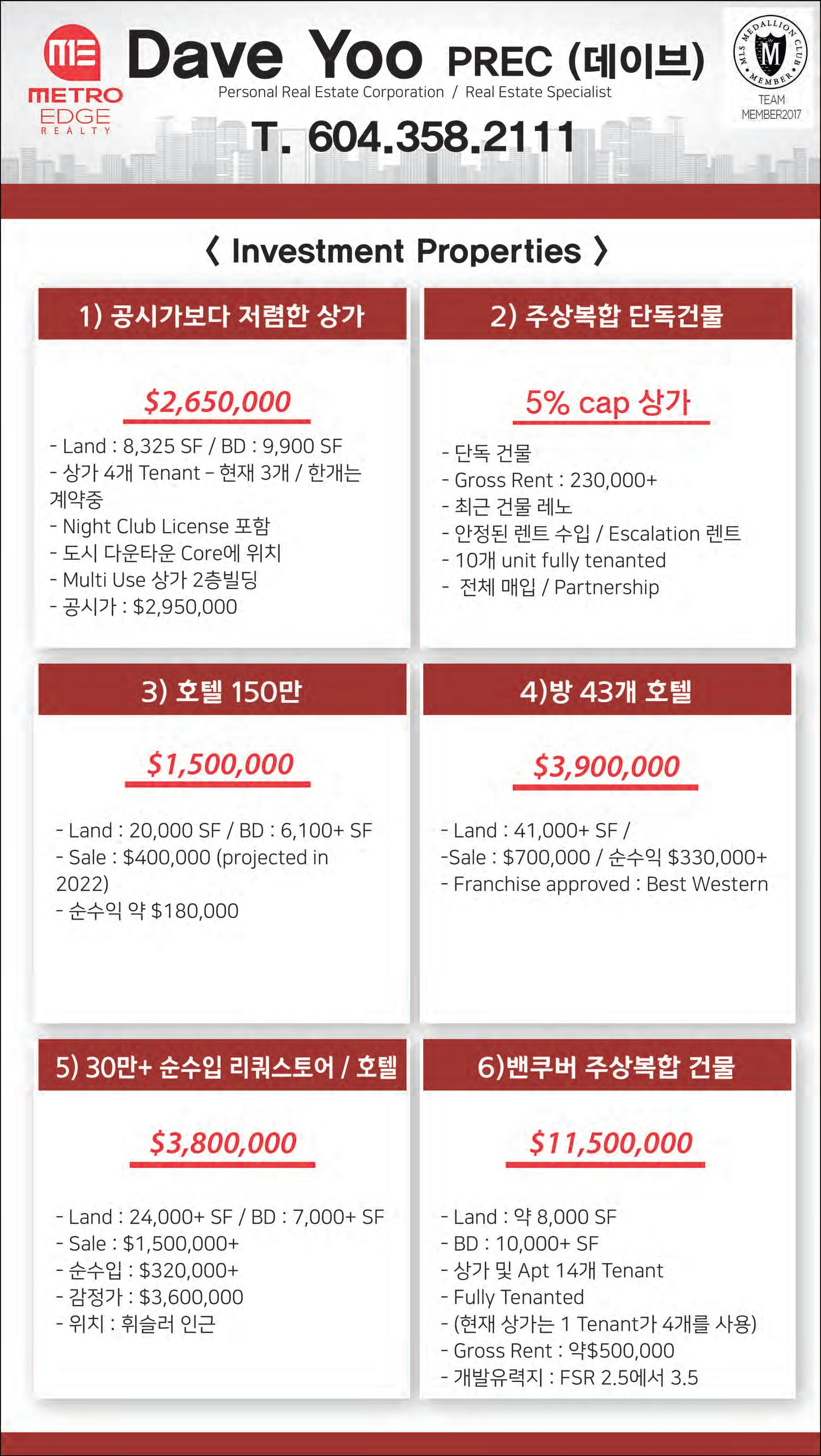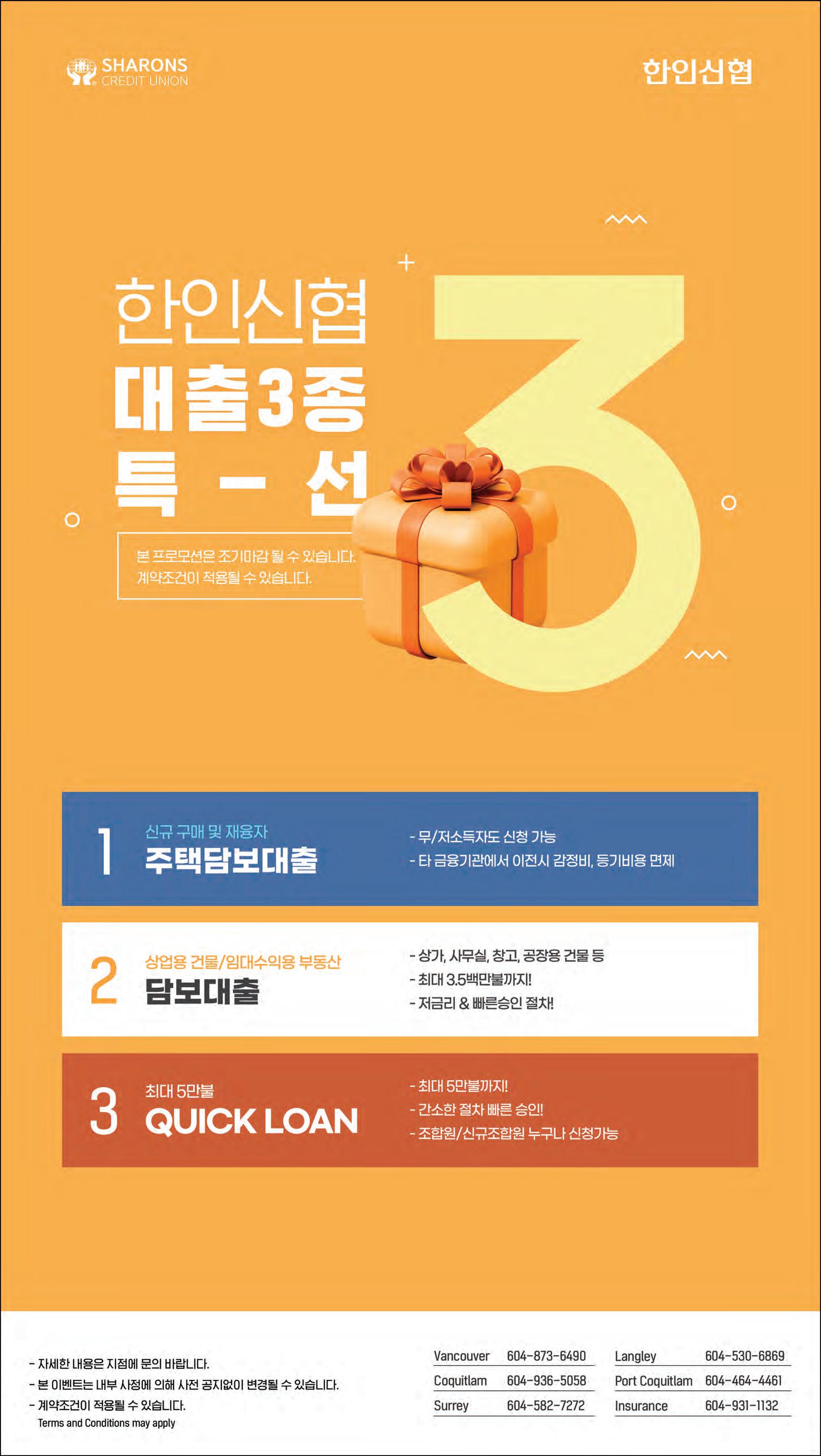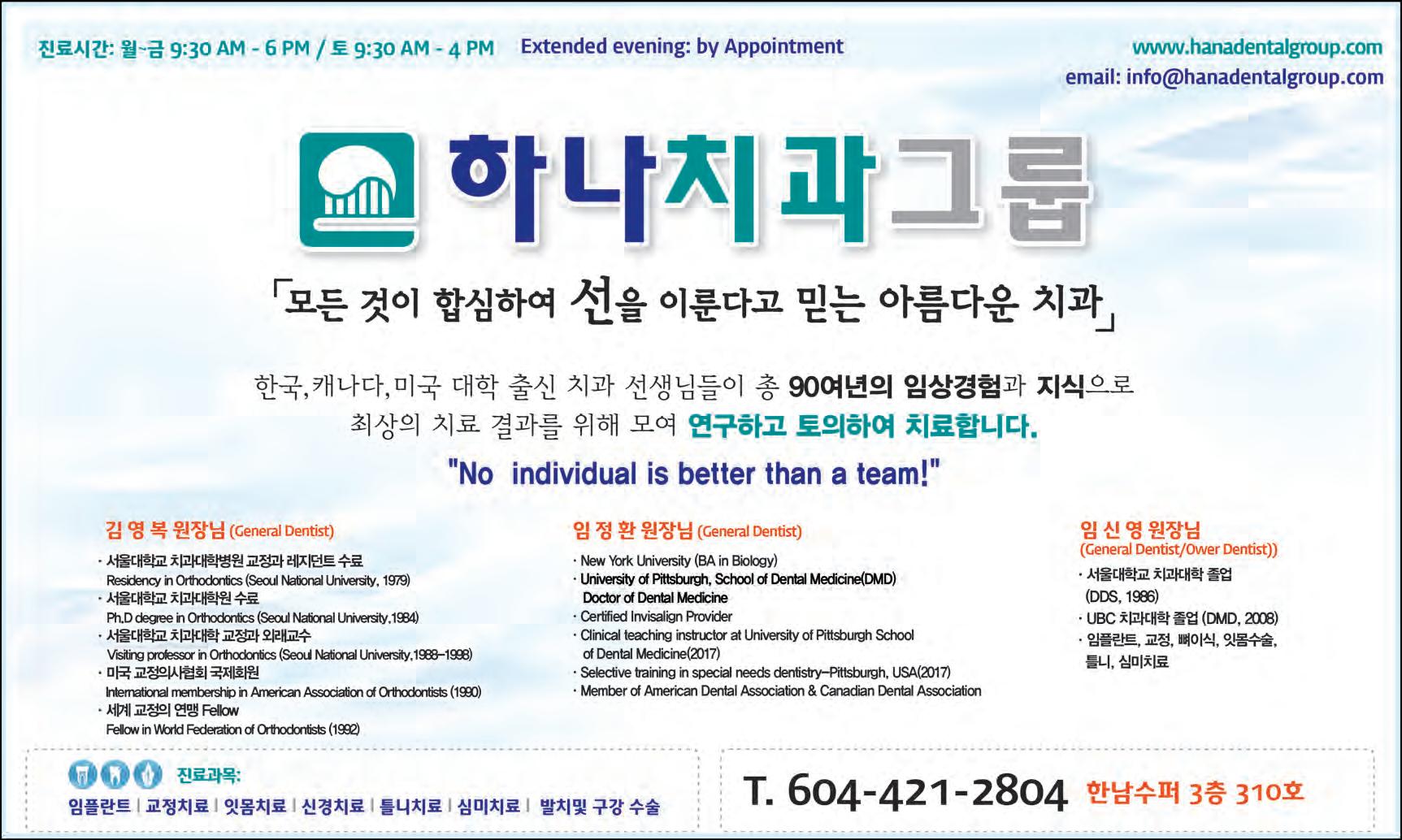 $100/월 16회 신문발행4회 &인터넷 e-중앙일보 (매주 화,수,금,토 발행) 지금 연 락하십시오 바로 내일 게재됩니다 중앙타운 & 홈페이지 업소록 광고문의 Tel. 604-544-5155 Email:ad@joongang.ca www.joinsmediacanada.com el: 604-544-5155/5150/5153 Email: ad@joongang.ca Printed on November 15th, 2022 부동산 매매 등기 / 공증서 / / 유언장 / 비지니스 매매 / / 양도위임장 / 계약서 / 진술서 604.416.0211 법률 공증사무소 최병하 법률공증사 헬스타운 비타민 쇼핑몰 OPEN gdvitamin.com 건강식품 3000여종 취급, 저렴한 가격, 한국택배까지 22년 2007-2020 15년 연속 메달리언클럽 마스터멤버 최재동부동산 Top10% of All Realtors메트로밴쿠버 William Hong, MBA T. 778-997-0427 wkhong99@yahoo.com www.williamhong.com “신중한 거래, 신중한 리얼터” 상담 604-319-6330 “올바른 학습방법, 기분좋은 학습결과” www.eliteprep.ca Junior Elite Prep Consulting 604.736.8922 604.939.6284 좋아서! 쉬워서! 스스로! 한상훈(James Han) T. 604.671.7783 하다현 AGATHA HA T. 604-505-7738 주택 융자 모기지 전문 부장 주택/자동차/비지니스/여행자 보험 외 한인종합보험(주) 유 용 규 Yong Yoo 604.803.9746 24 / 7 상담가능 604.992.2580 모기지 전문가 이 경 은 shanna.lee@rbc.com (Shanna Lee) 방정희 변호사 604.559.1470 파이오니아 법무법인 꼼꼼한 법률서비스 로 최선을 다하는 한인 1 세대 대표 로펌 박신일 법률공증사 NOTARY PUBLICSHINIL PARK 부동산 등기/사업체 양도 유언장/위임장/증언서/공증 T604.936.7275 주태근/앤디김 회계법인 회계/세무/감사/사업계획 및 상담 T. 604-936-5222 T.604 936 7777 #101-15375 102A Avenue. Surrey. BC victorcga@hotmail.com 이경수 kyungsooa@gmail.com 주거 & 상업용 매매 / 임대 / 관리 전문 “17년 경력의 전문 리얼터” 공인중개사 778-322-7942 식당/식품 가디언 한인약국 Guardian HANIN PHARMACY #201-329 North Rd, Coquitlam 604.939.7880 코퀴틀람 한인빌리지내, 한아름마트 옆 #210-1175 Johnson St, Coquitlam BC V3B 7K1 T.778 285 2804 원장 임정환 / 원장 임신영 임플란트 · 교정 · 잇몸치료 신경치료 사랑니 크라운 코퀴틀람 센터 그린 치과 오약국 · 가정의 밴쿠버 오약국 T.604-800-2250, 604-939-8311 #100-504 Cottonwood Ave. Coquitlam 이글리지 밴쿠버 한인약국 #201B-1194 Lansdowne Dr. Coquitlam 하나치과그룹 김영복 원장/임신영 원장/김경수 원장/임정환 원장 버나비 한남슈퍼 3층 310호 604-421-2804 604.428.0551 김정화 치과 진료 시간 Mon-Fri 10:00am-7:00pm Sat 10:00am-4:00pm (목,일,공휴일 휴진) 103-4501 North Rd. Burnaby BC V3N 4R7 happysmiledental7@gmail.com 웨스트캔 이민컨설팅 공인이민컨설턴트 최 주 찬 WestCan Immigration Consulting T: 604-461-0100 www.westcanimm.com #304-566 Lougheed Hwy. Coquitlam BC 최고 딜러 기술력 진정 여러분이 찾던 정비 shop Pick up & Delivery Service ▶엔진튠업 ▶쇼바 및 서스펜션 ▶마후라 수리 및 교환 ▶컴퓨터 및 각종 전기장치 ▶각종 오일 및 필터 교환 ▶엔진/밋숀 교환 및 수리 ▶브레이크 수리 및 교환 ▶타이어 교환 및 휠 밸런스 ▶에어컨 및 히터 604-430-8040 5757 Beresford St. Burnaby 604.461.4043 604.461.4040 한국어 서비스 English Service 2902 St.Johns Street, Port Moody, BC V3H 2C3 차량 수리기간 중 무료 대차 90% 이상이 고정 고객인 회사 권원식 부동산 T.604-306-6750 bkwonrealtor@gmail.com BRUCE KWON PREC 30년 오랜 경험의 전문 리얼터 레스토랑 전문, 맞춤형 부동산 비지니스 / 투자건물 / LEASE / 경매물건 남승오 부동산 Charles Nam PREC* 604.710.3897 집매매 콘도매매 부동산 투자 신규분양 권장원 DLC 모기지 Andy Kwon Suite 600, 1200 West 73rd Avenue Vancouver. BC V6P 6G5 604.785.8688 DLCmortgage www.andykwonmortgage.com 미국 캐나다 상법 변호사 상법 및 부동산법 / 각종 법인 관련 업무 T. 604.433.0787 ALL POINTS REALTY 위니박 부동산 winniepak@remax.net www.winniepark.net 604.813.8000 브라이언 최 Brian Choi 604.773.9882 뉴 스트림 리얼티 Personal Real Estate Corporation 한인 마켓 담당 팀장 (Korean Team Leader) 김영선 부동산 778.241.5555 밴쿠버 최고의 부동산 전문가 www.youngsunkim.com 건강식품/의료기 교육 학원/학교 금융 보험/은행 법률 회계사/공증/공인번역 버나비 에드먼즈 2호점 T. 604-468-2432 의료 이민/유학 자동차 부동산 가구/건축/인스팩션 Registered Clinical Counsellor, MA, MEd Tel. 778-887-7275 연우심리 상담소 延 友 심리치료 / 놀이치료 / 심리검사 / 부부상담 / 가족상담 604-492-2875 #525-329 North Rd, Coquitlam, BC 프리미엄 캐나다산 허니스틱 광고문의: 604-544-5155