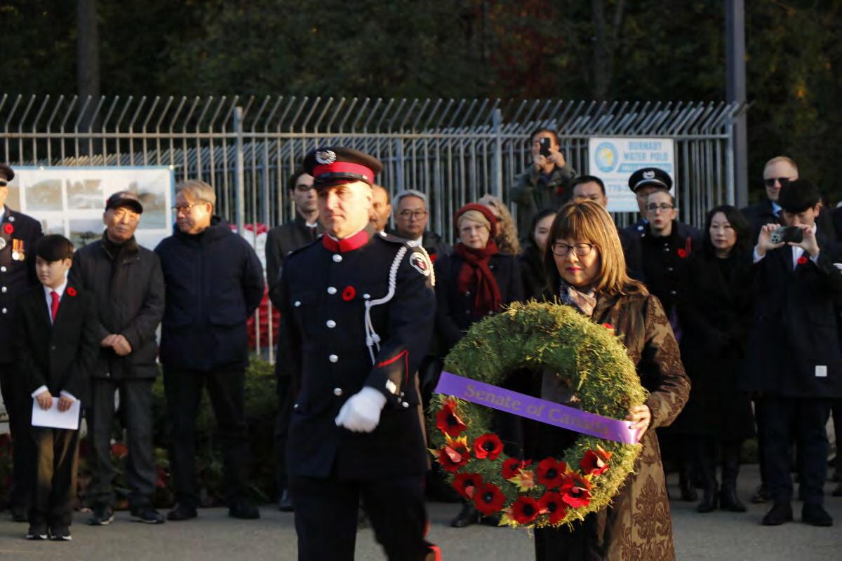 얻은 소중한 권리와 자유를 행하고 보호함으로써 그들의 희 생을 기리고 그들을 모범으로 삼아 우리 의 삶을 나아가는 것입니다”라는 말했다. 11 월 4 일, 마틴 상원 의원은 상원에 서 진행된 제 23 주년 현충일 기념식에 참석했다. 이 엄숙한 기념식은 디에프 공 습(Dieppe Raid) 80주년, 캐나다의 발칸 반도 평화 유지 30주년, 한국전 당시 355 고지 전투 70 주년과 캐나다인들이 참전 하고 목숨을 희생한 모든 전쟁과 분쟁을 추모했다. 국회의원, 참전 용사, 정부 관계 자, 군 관계자 그리고 내빈들이 많은 젊 은 남녀가 캐나다에 작별 인사를 하고 전 세계에서 평화를 위해 기차를 탔던 기차 역으로 사용됐던 새로운 상원 건물의 상 원에 모였다. 11 월 5 일 온타리오주, 킹스턴에서, 마