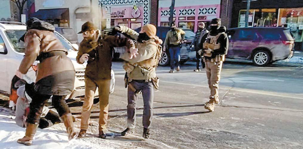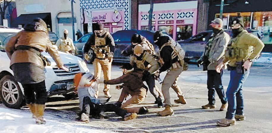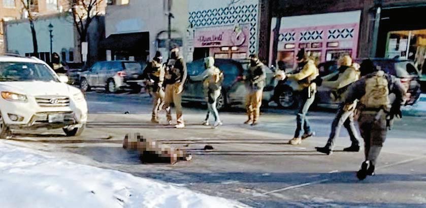 최루액 쏘고 난사했다, ICE 또 총격 사망 미국 미네소타주 미니애폴리스에서 24일(현지 시간) 이민단속국(ICE) 요원에 의한 사망사건이 또다시 발생했다. 사망자는 37세 백인 남성 알렉 스 제프리 프레티(빨간 원)로 확인됐다. 요원들이 프레티에게 최루액을 분사하는 모습. 제압 된 프레티. 쓰러진 프레티를 향해 총격을 가하는 모습. >> 관계기사 12면 [로이터=연합뉴스]