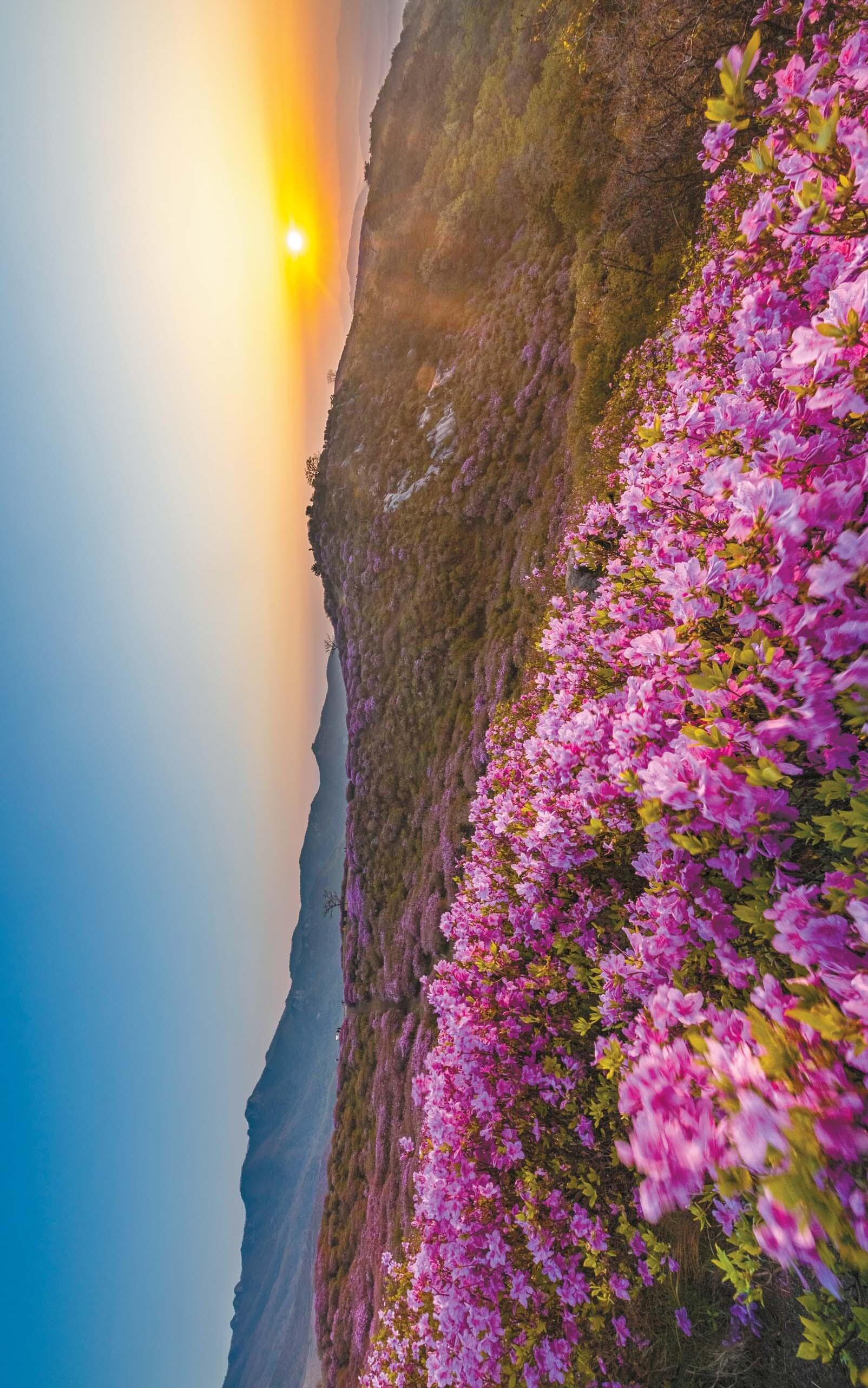 4년 만에 만나는 황매산 철쭉 해발 800여m의 평전에 봄꽃의 대미를 장식할 철쭉이 본격적으로 피기 시작했다. 경남 산청군과 합천군에 걸쳐 있는 황매산 모습이다. 철쭉 군락지로는 국내 최대규모( 60만㎡) 다. 이곳에서 코로나 이후 4년 만에 ‘황매산 철쭉제’가 오늘부터 5월 14일까지 열린다. 올봄 이상 고온으로 꽃 들이 예년보다 일찍 피어 ‘꽃 없는 꽃축제’가 열렸지만, 고지대에서 자라는 황매산 철쭉은 축제 기간에 맞춰 피고 있다. 현재 1, 2 군락지는 70%, 3, 4 군락지는 40% 정도 꽃망울을 터뜨려 축제 기간 절정을 이룰 것으로 보인다. 황매산은 우리나 라 3대 철쭉 명산으로 1970년대 목장 부지가 지금의 철쭉군락지로 탈바꿈했다. 사진·글= 김상선 기자 kim.sangseon@joongang.co.kr
